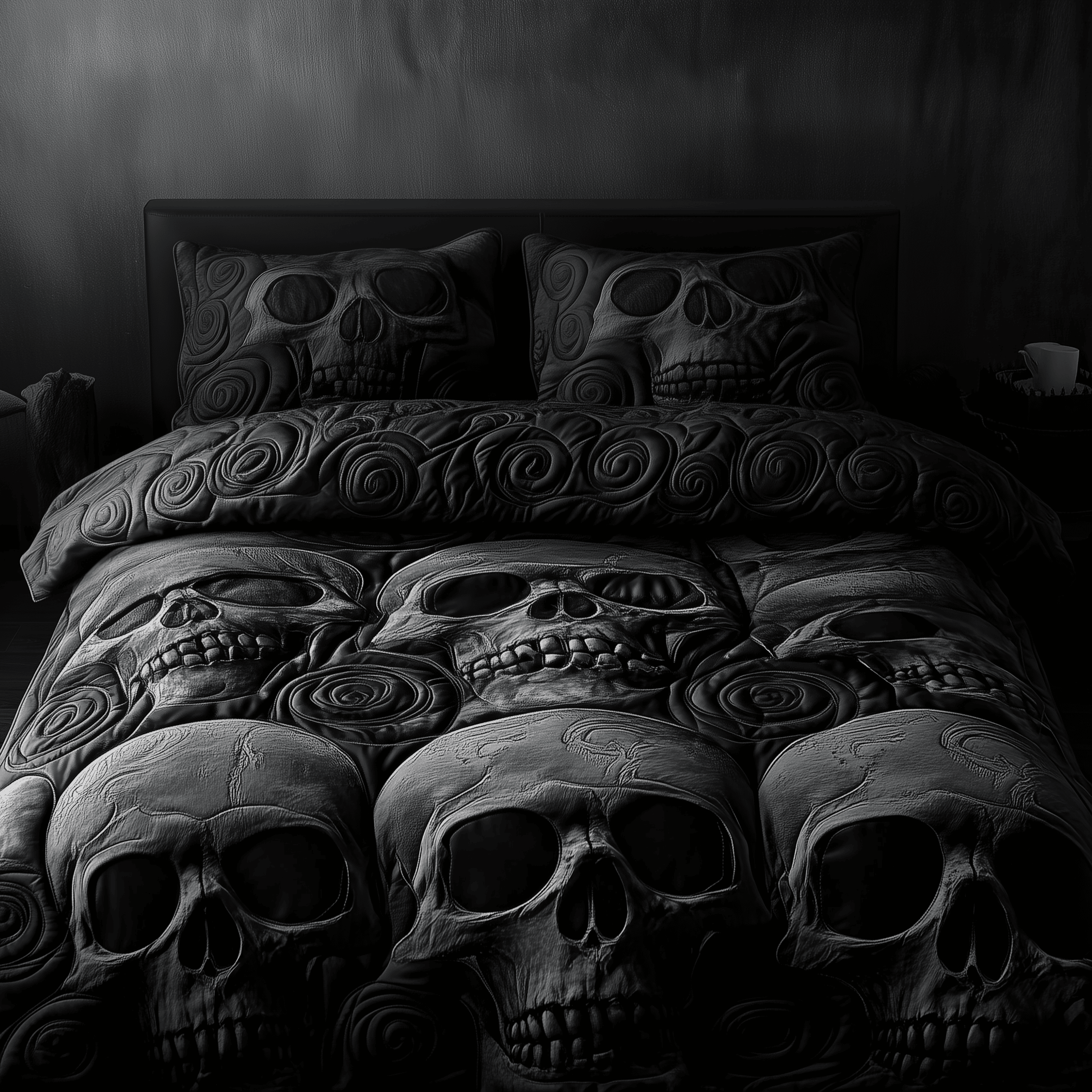 Black Skull Quilted Bedding Set Christmas Bedding Set Christmas Gifts For Couples