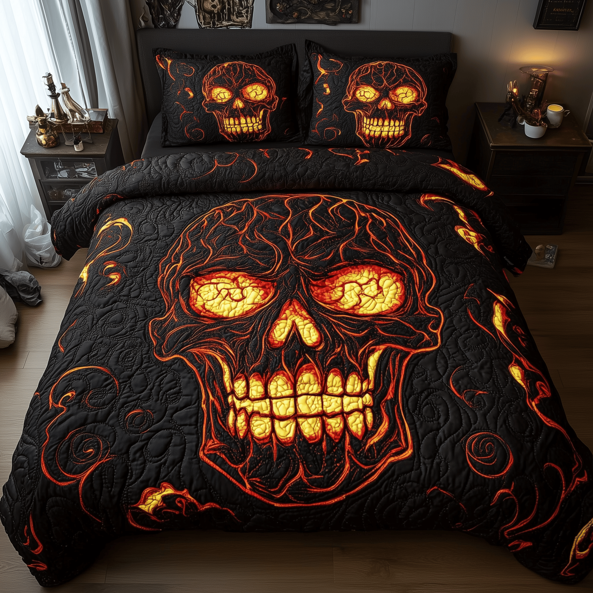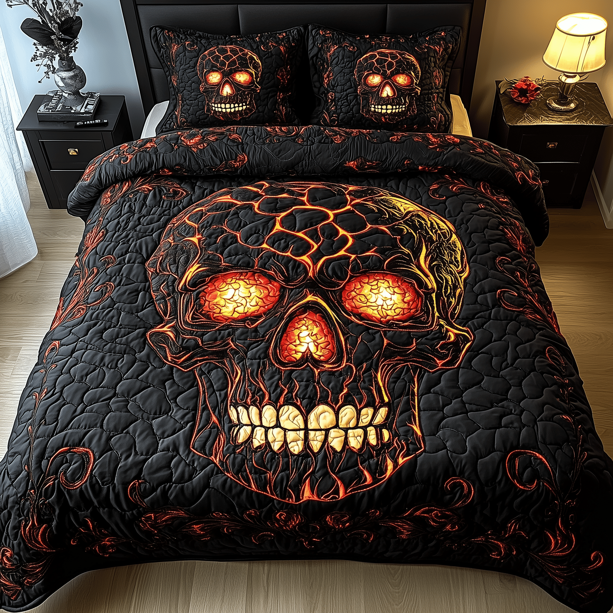 Lava Crack Skull Quilted Bedding Set Christmas Bedding Set Gifts For Couples Who Have Everything