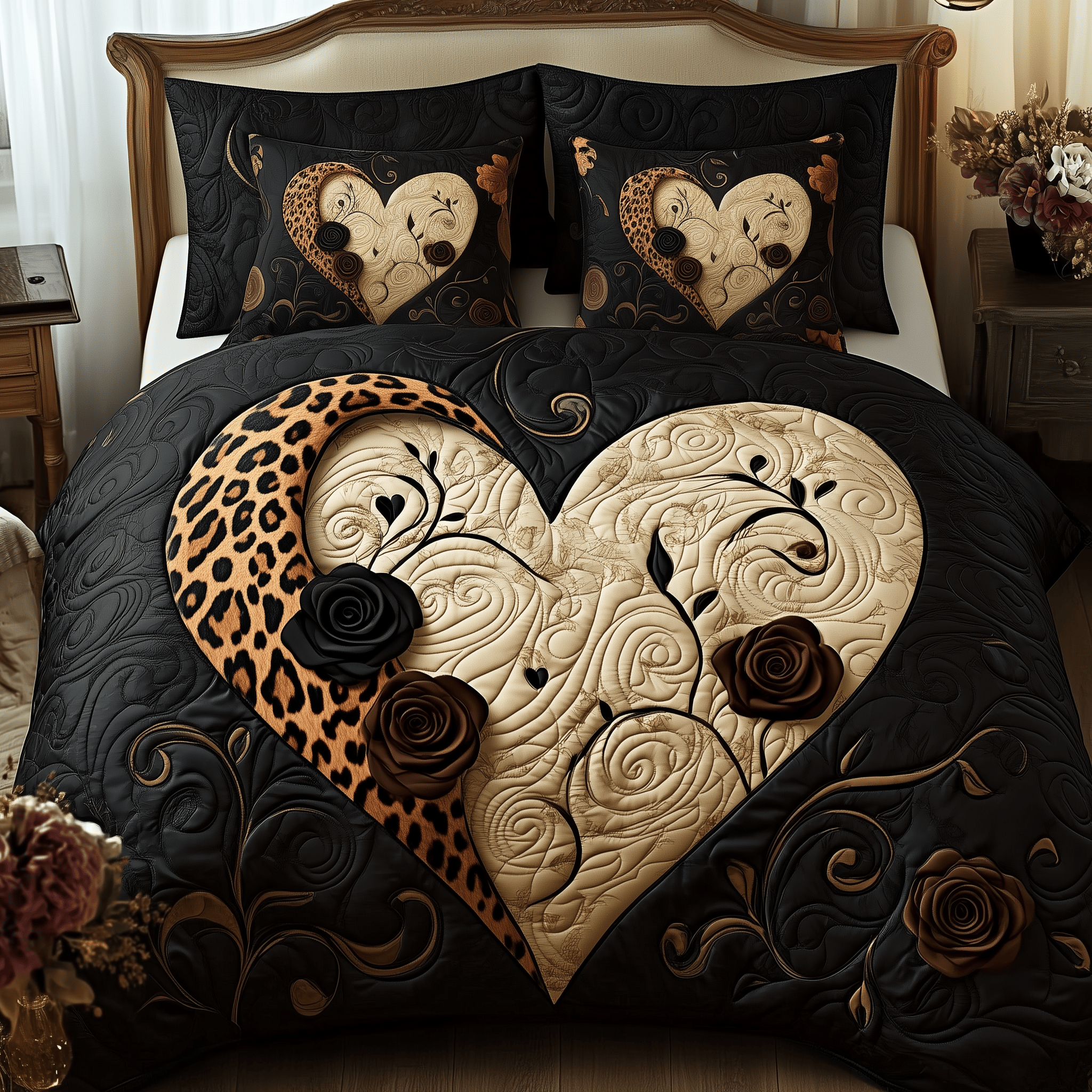 $79.95 – $109.95Price range: $79.95 through $109.95Leopard Heart Quilted Bedding Set Christmas Bedding Set Anniversary Gifts For Couples