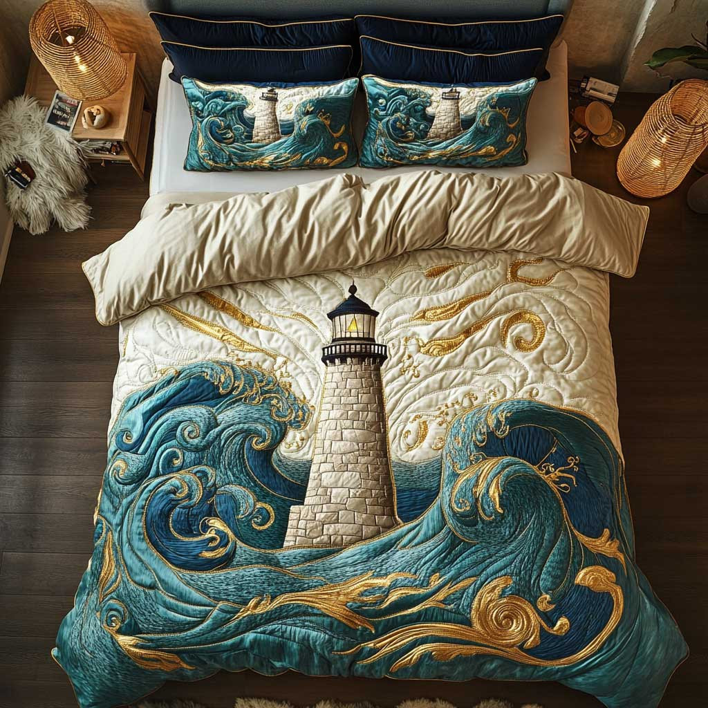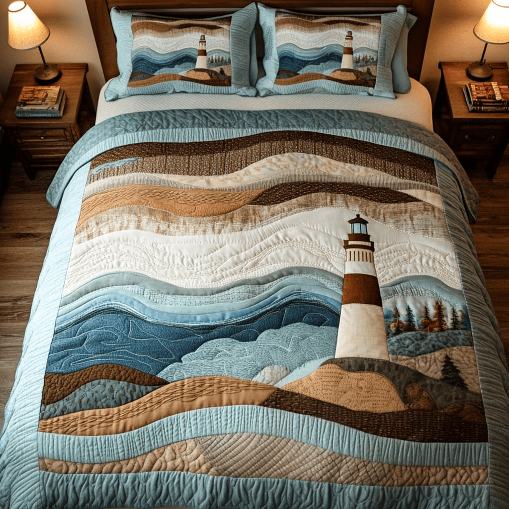 Lighthouse Calm Quilted Bedding Set Duvet Cover Bedspread Bedroom Decor Presents
