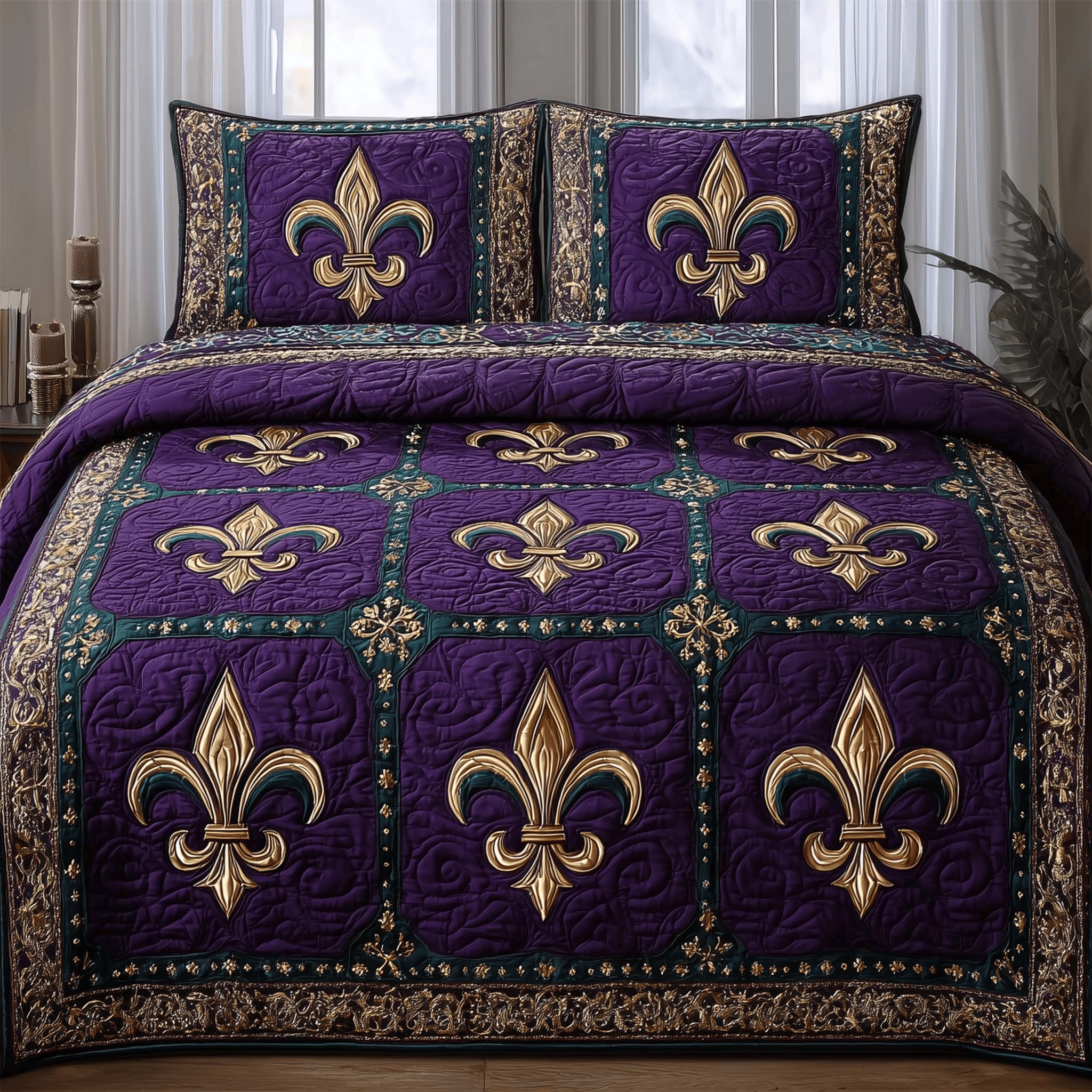 $79.95 – $109.95Price range: $79.95 through $109.95Mardi Gras Quilt Bedding Set Fleur de Lis Pattern King Size Comforter New Orleans Themed