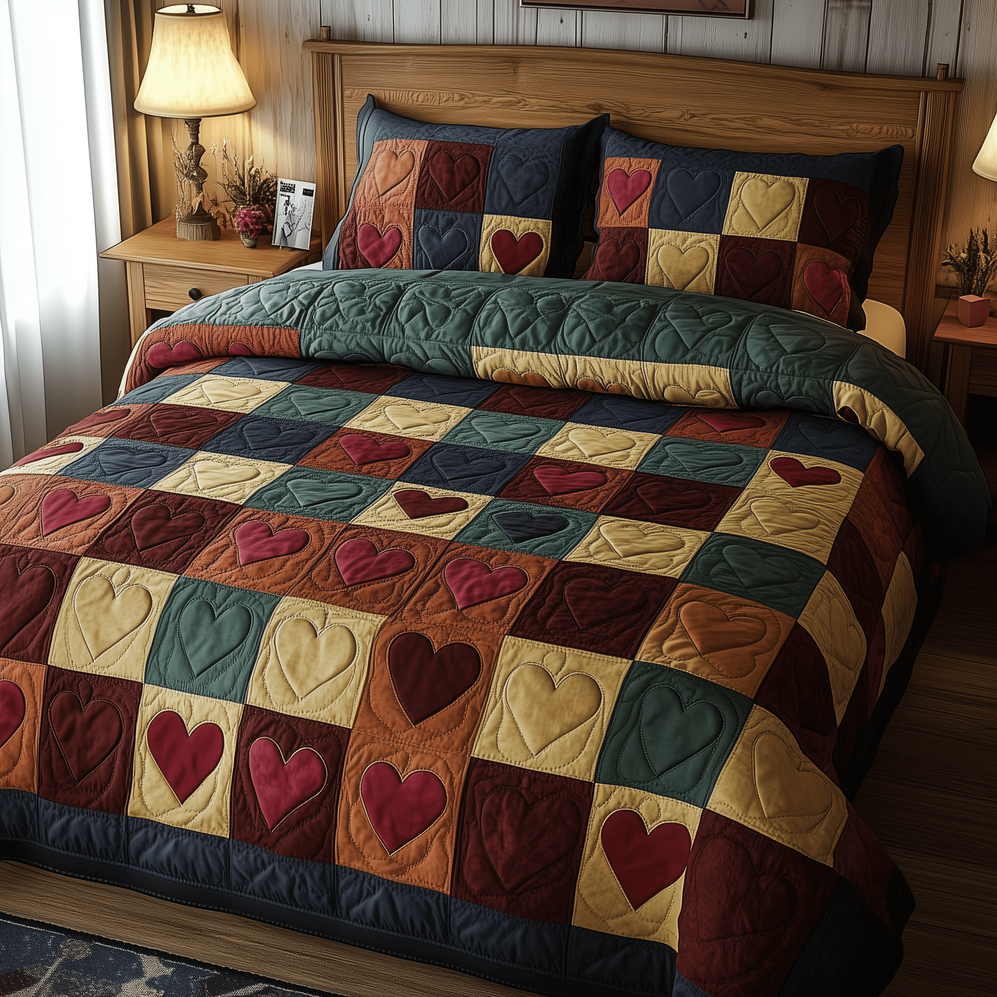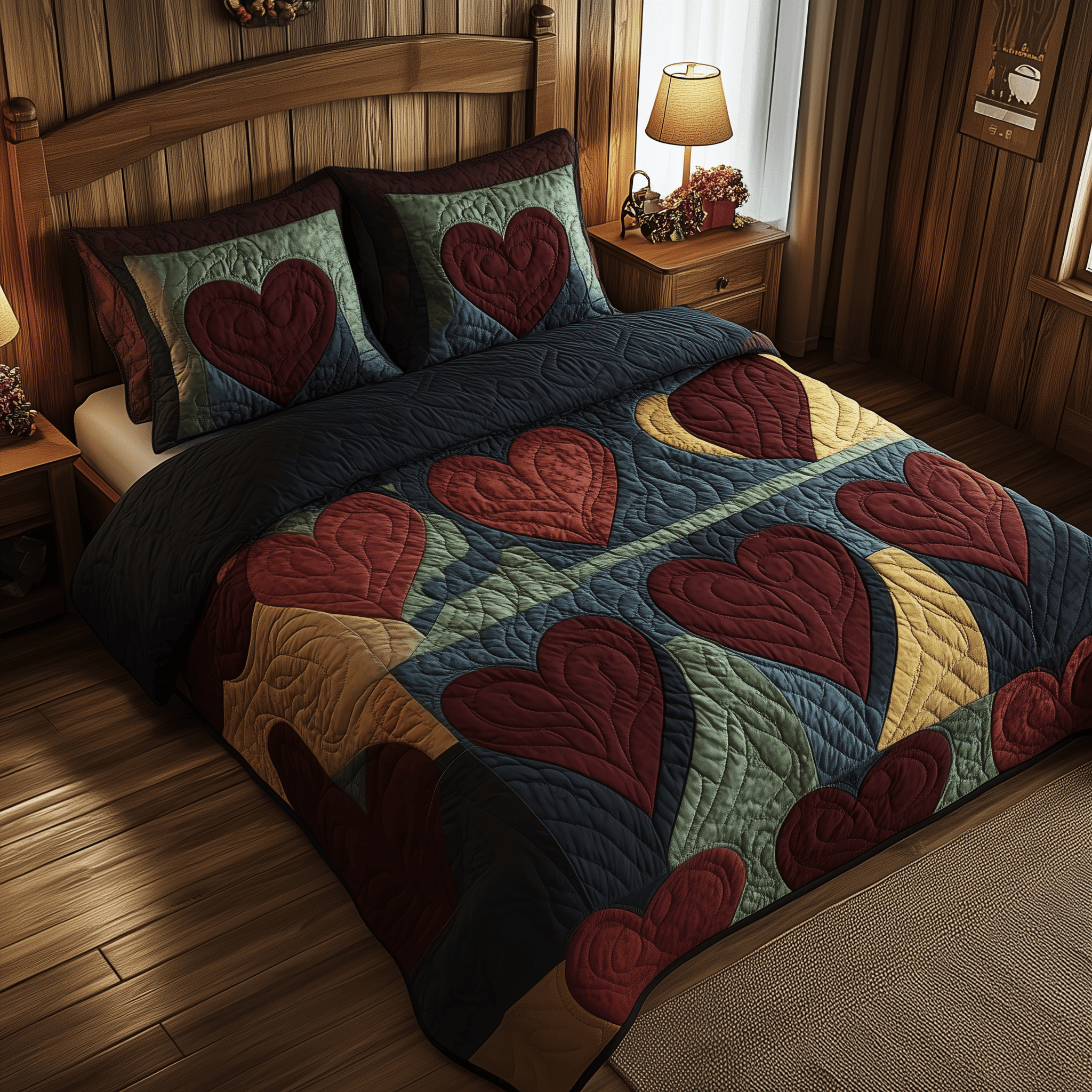 Burgundy Heart Shape Quilted Bedding Set Xmas Bedding Set Unique Christmas Gifts For Couples
