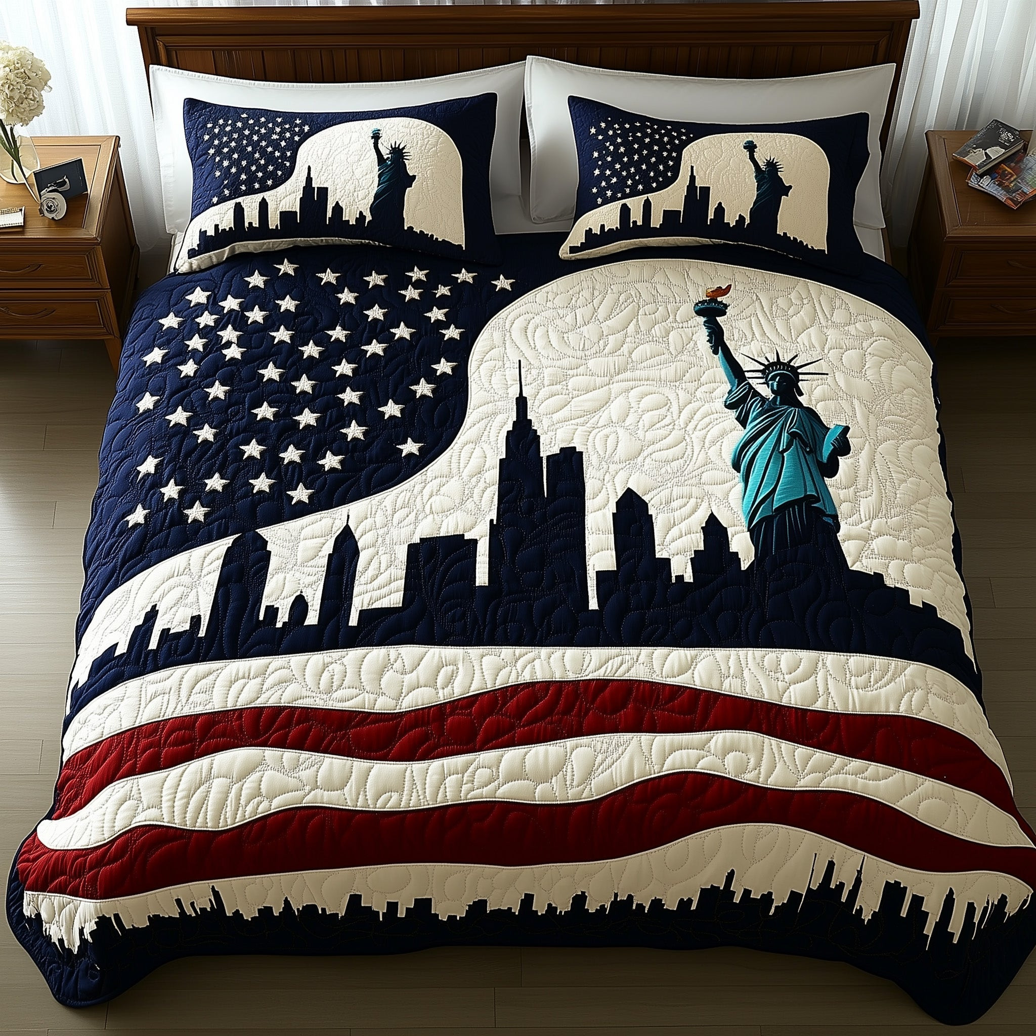 $79.95 – $109.95Price range: $79.95 through $109.95Patriotic Skyline Quilted Bedding Set Fourth Of July Birthday Presents
