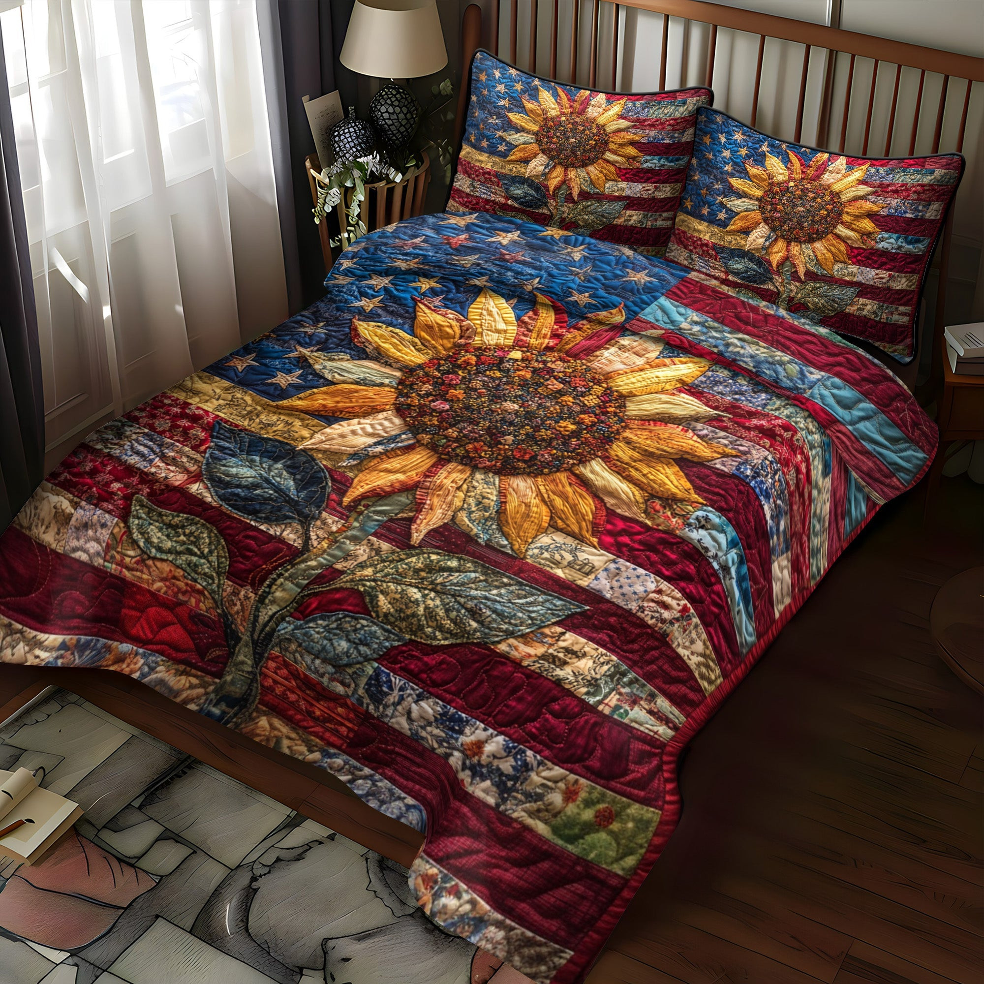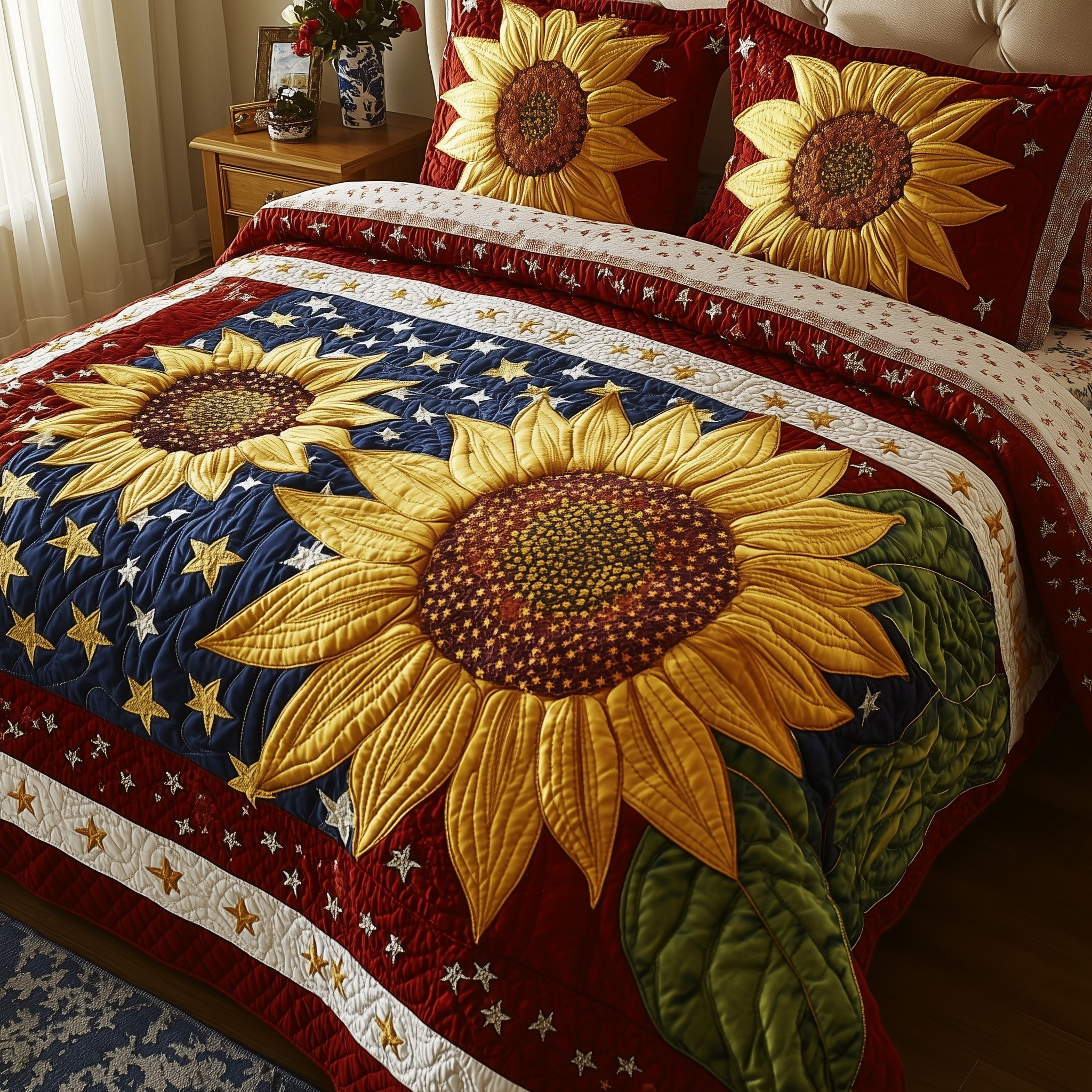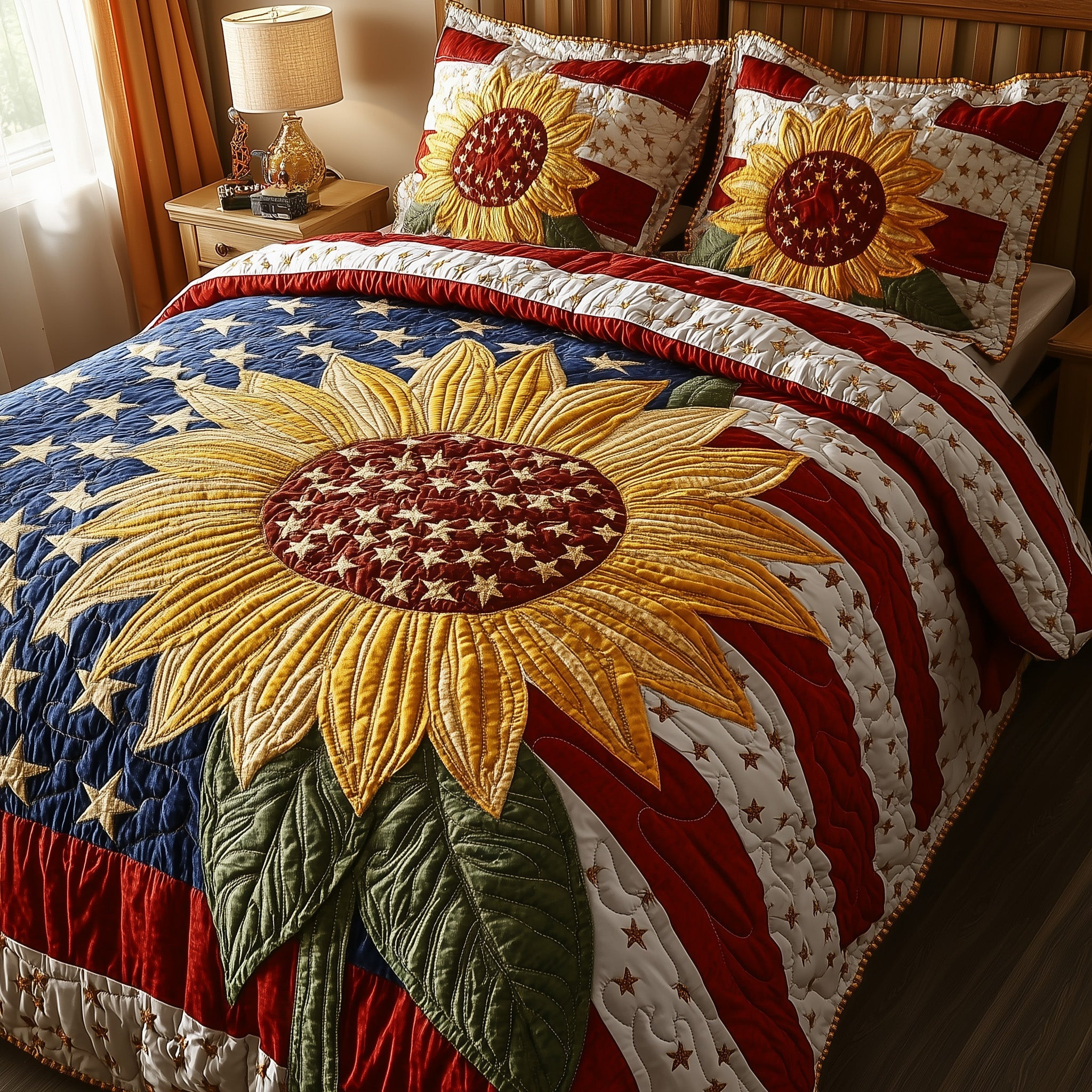 $79.95 – $109.95Price range: $79.95 through $109.95Patriotic Sunflower Quilted Bedding Set Best Bedding Sets 4Th Of July Neighbor Gifts