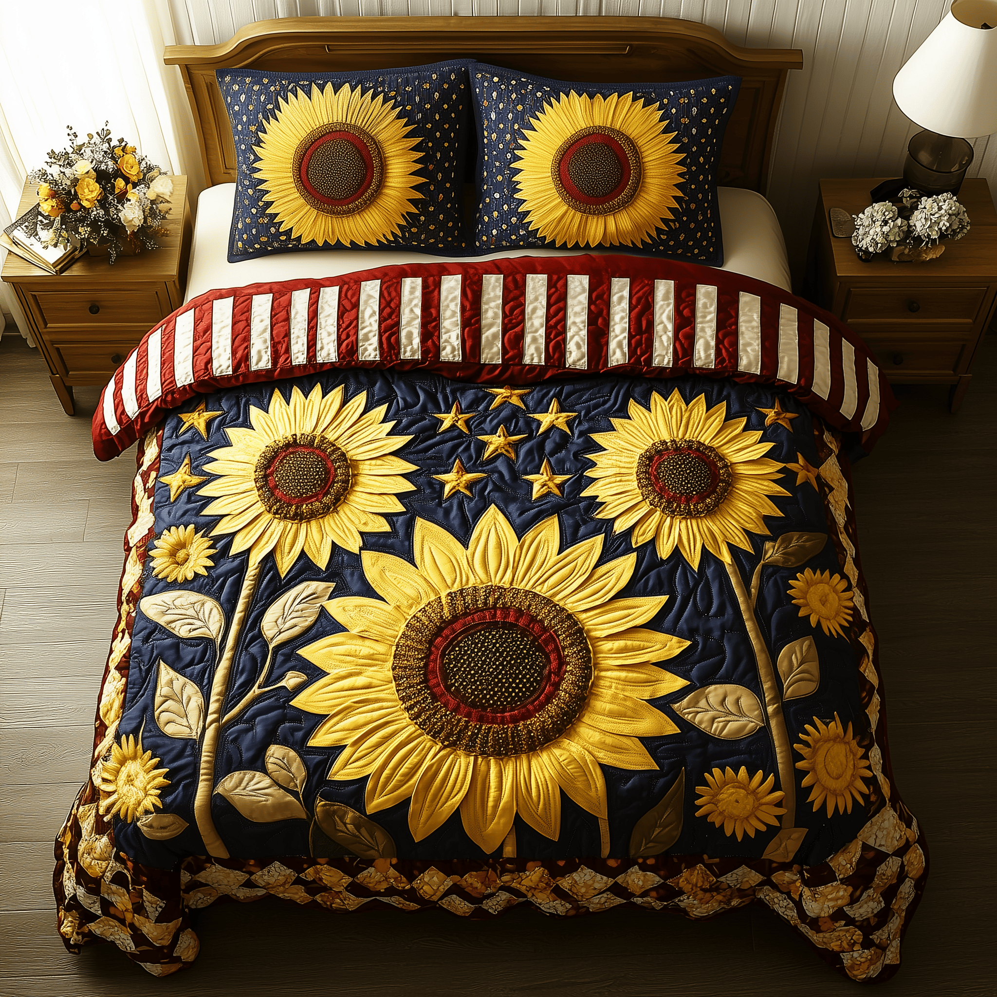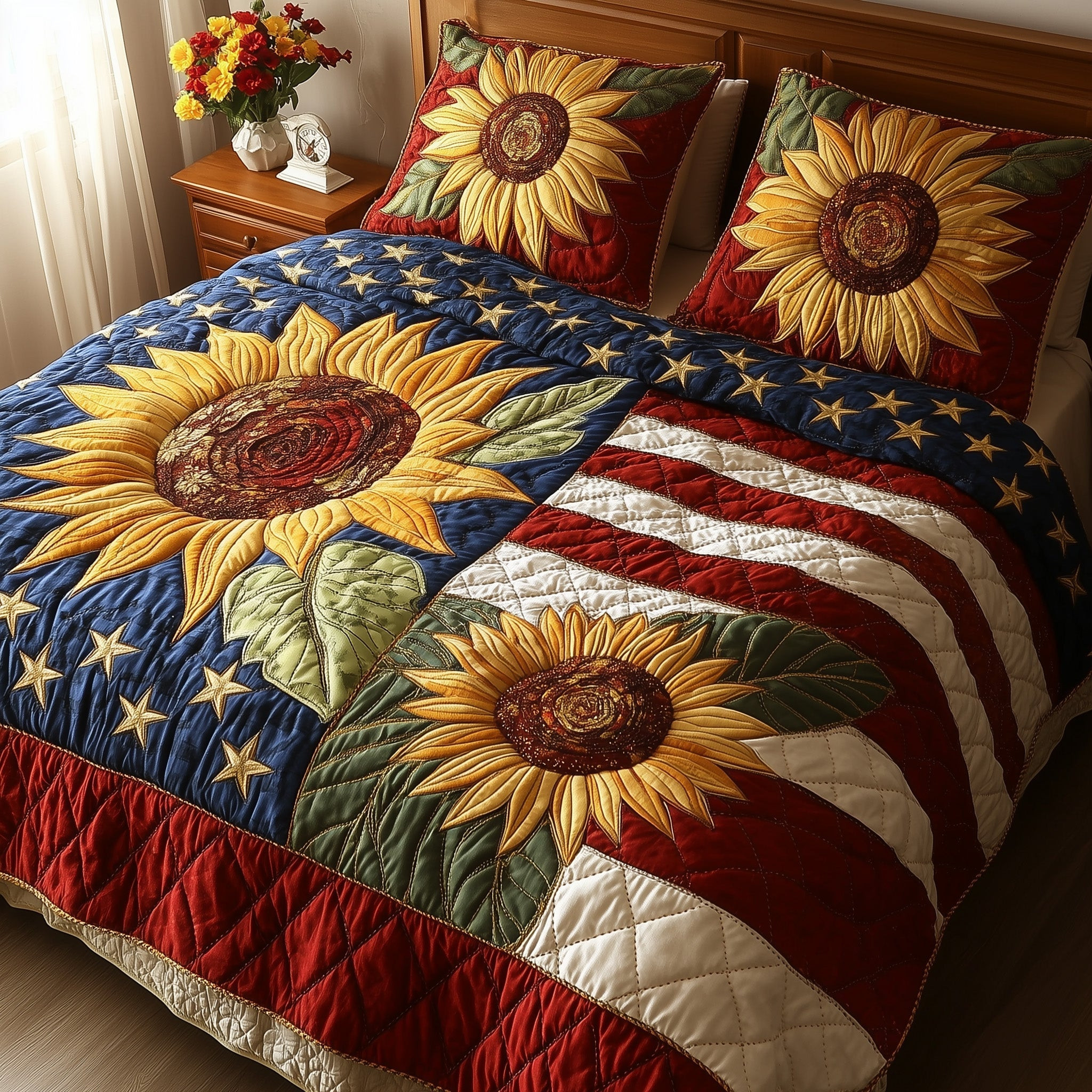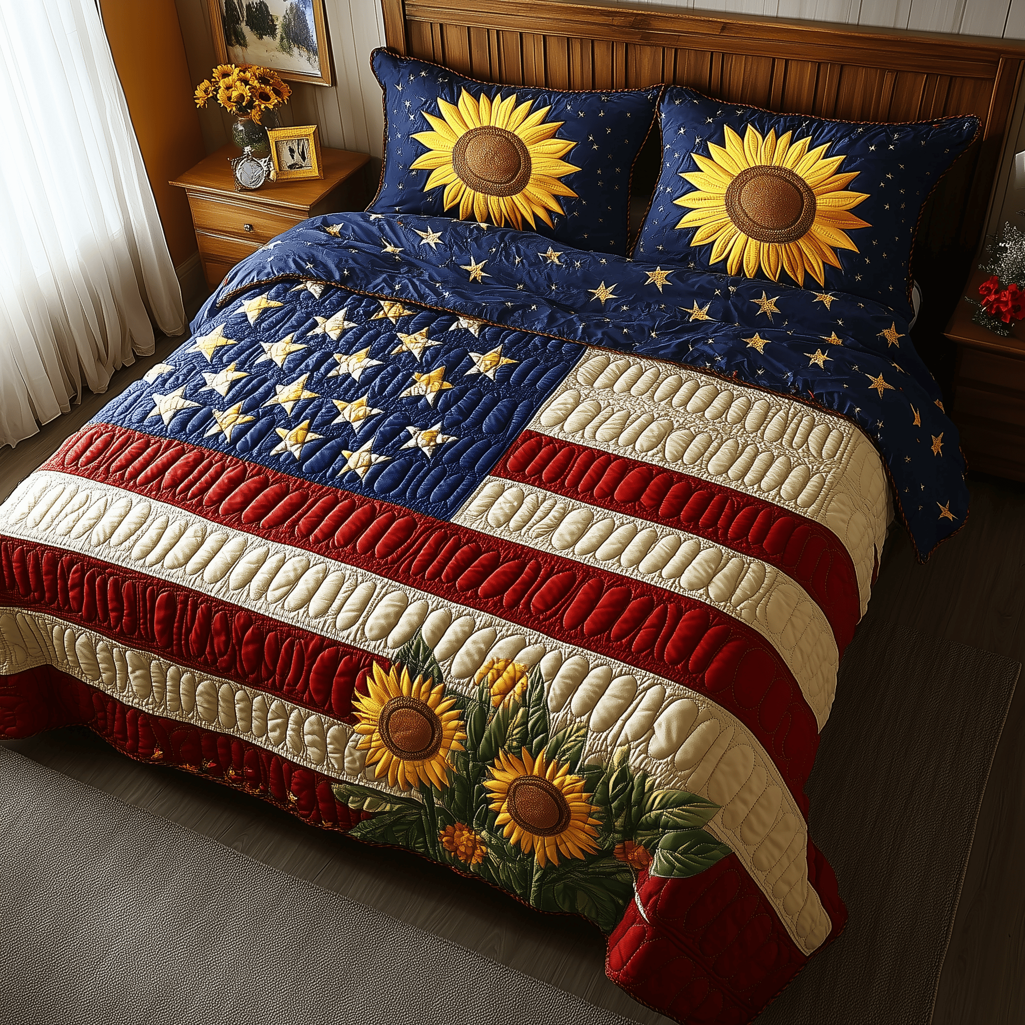 $79.95 – $109.95Price range: $79.95 through $109.95Patriotic Sunflower Quilted Bedding Set Best Bedding Sets 4Th Of July Neighbor Gifts