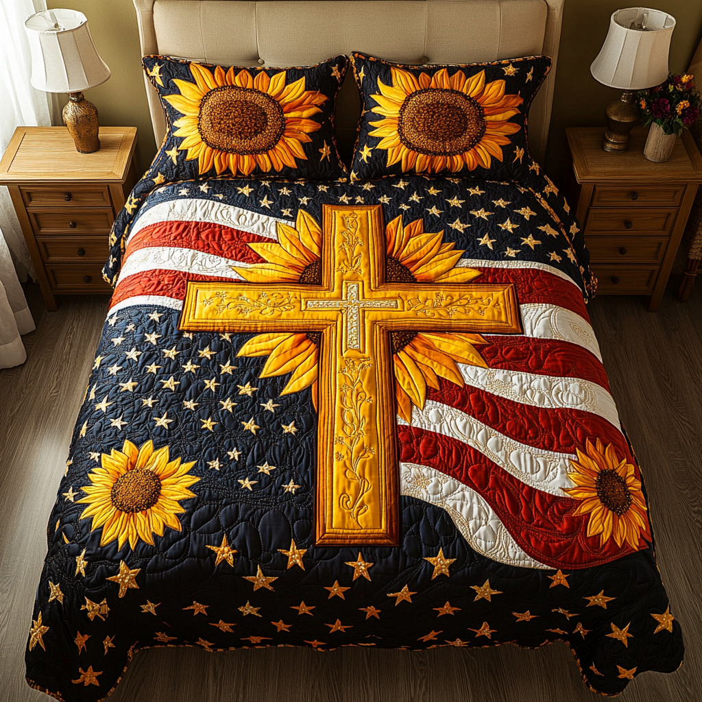 Patriotic Sunflowers Quilted Bedding Set Floral Duvet Covers Fourth Of July Birthday Gifts