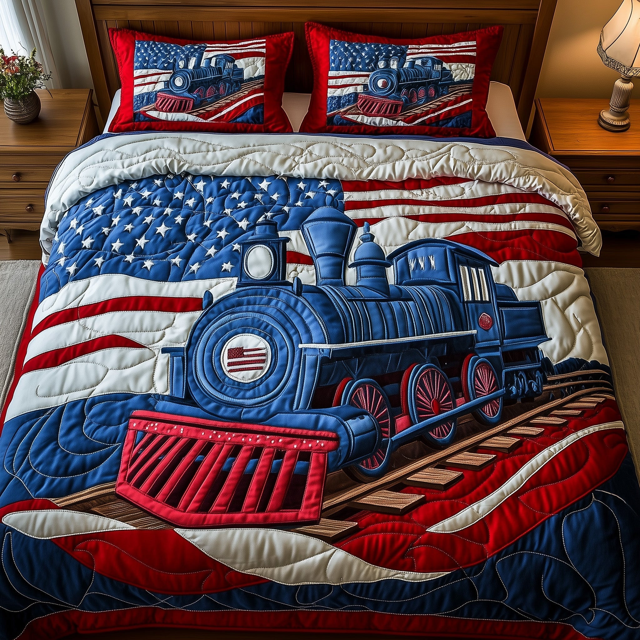 $79.95 – $109.95Price range: $79.95 through $109.95Patriotic Tracks Quilted Bedding Set Floral Duvet Cover 4Th Of July Birthday Gift Ideas