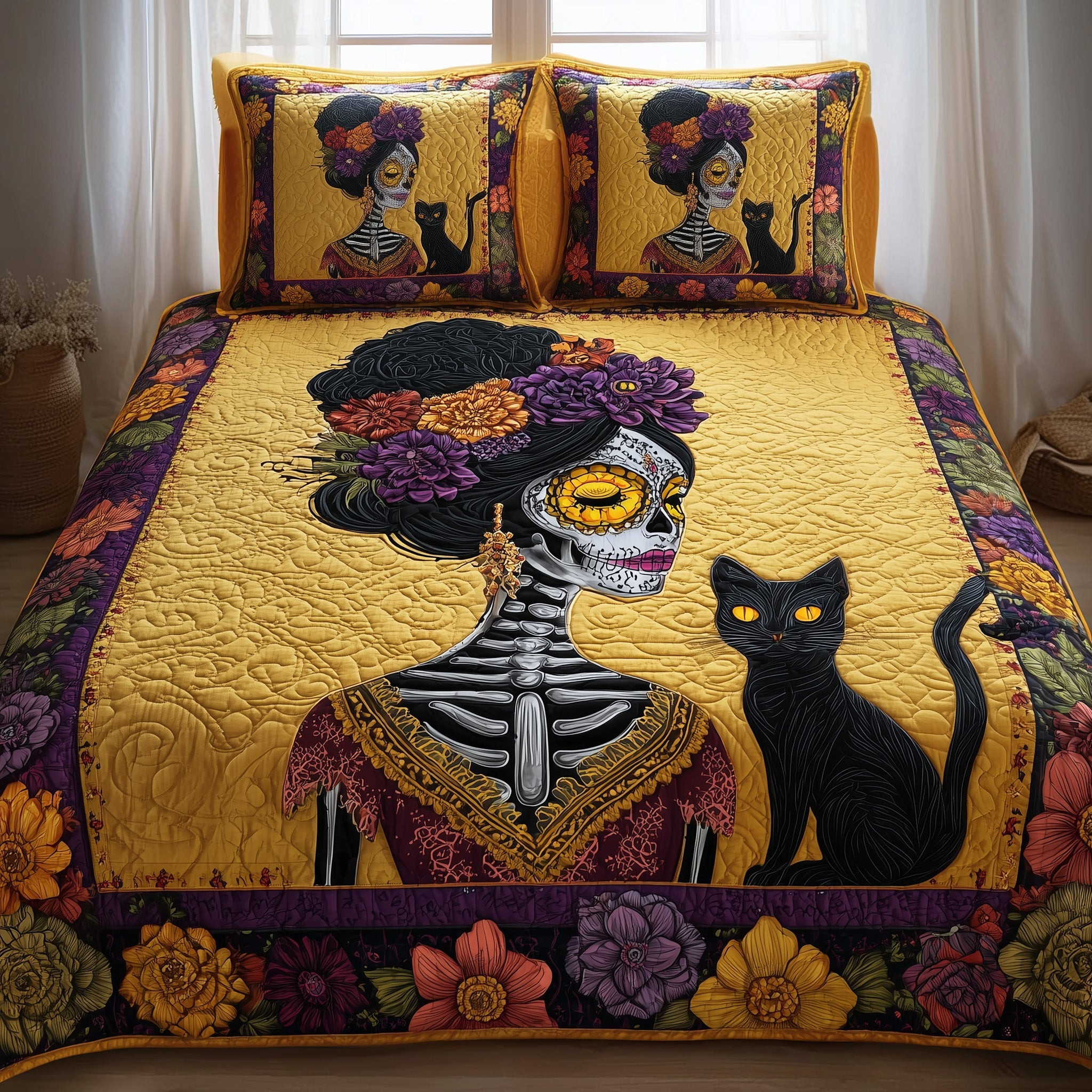 $79.95 – $109.95Price range: $79.95 through $109.95Queen of the Dead Quilted Bedding Set Duvet Cover Catrina Gifts For Black Cat Owners