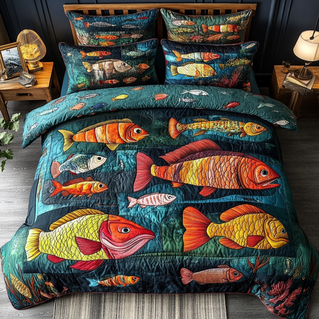 Ocean Turtle Quilted Bedding Set Christmas Bedding Set Top Christmas Gifts 2024 For Couples