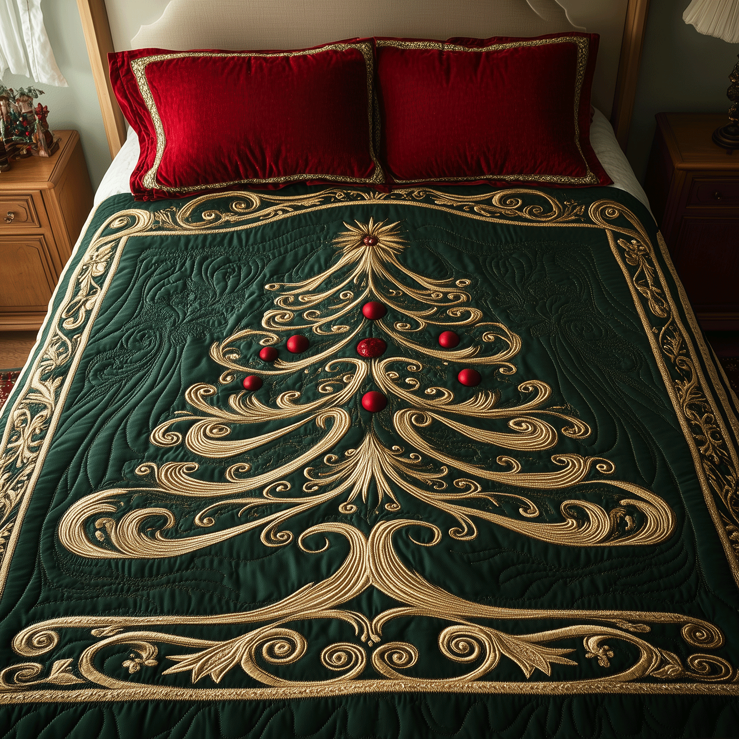 Opulent Christmas Tree Quilted Bedding Set Bed Covers Special Birthday Gifts For Mom