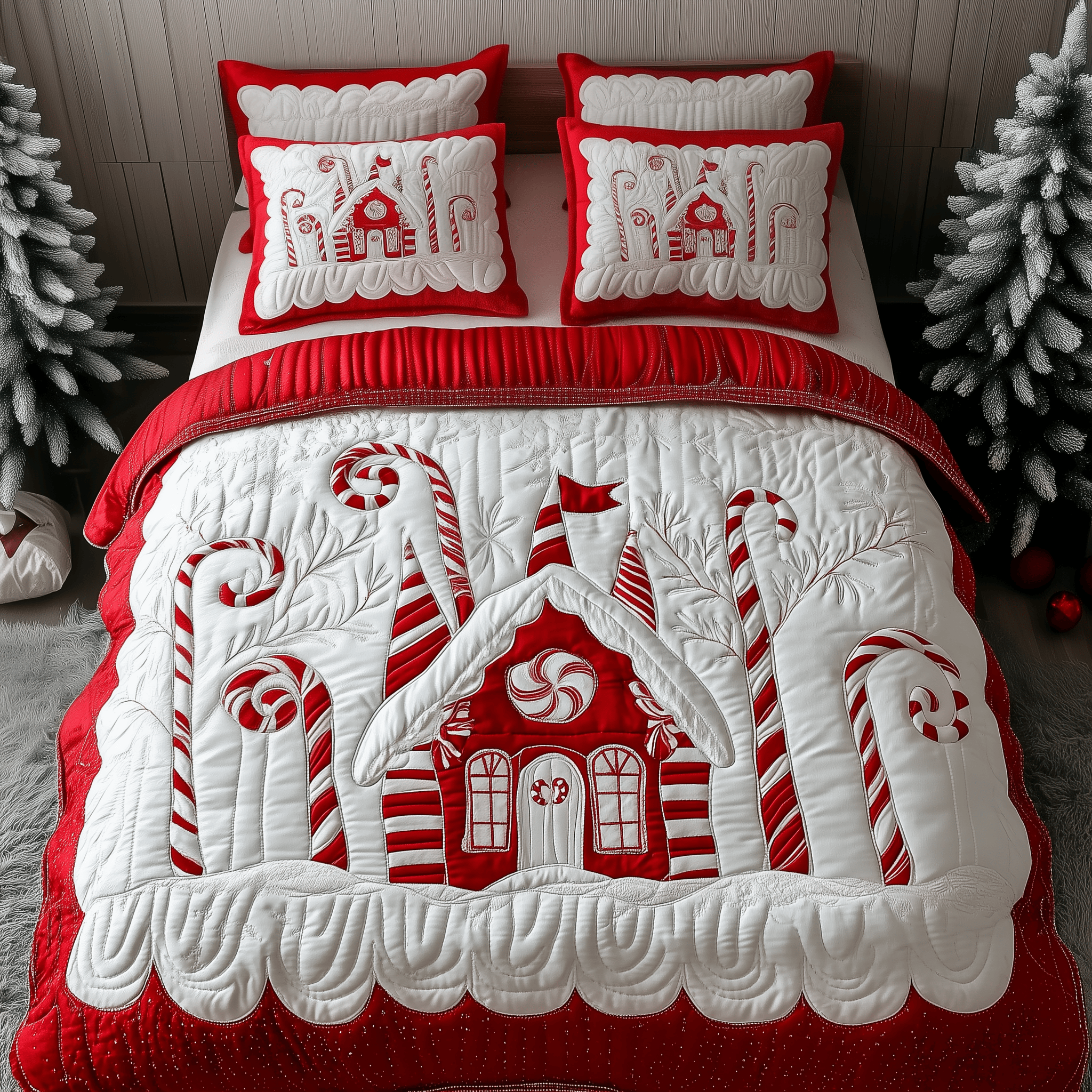 Candy Canes Quilted Bedding Set Christmas Bedding Set Christmas Gifts For Newlyweds