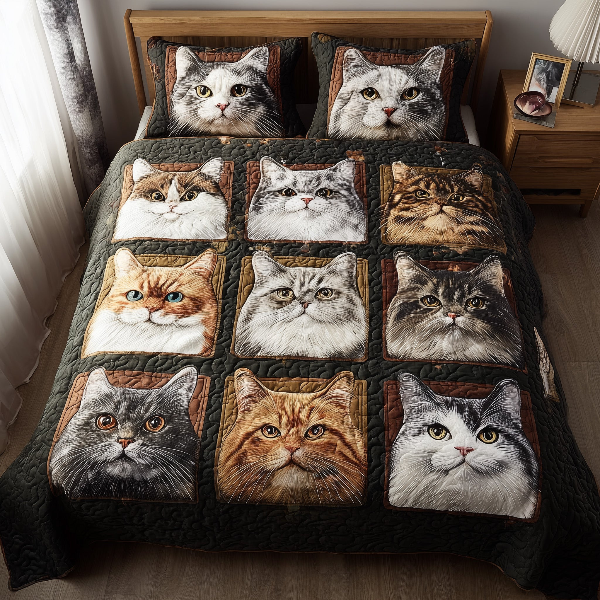Cat Joy Quilted Bedding Set Duvet Bed Set Cute Cat Presents For Christmas