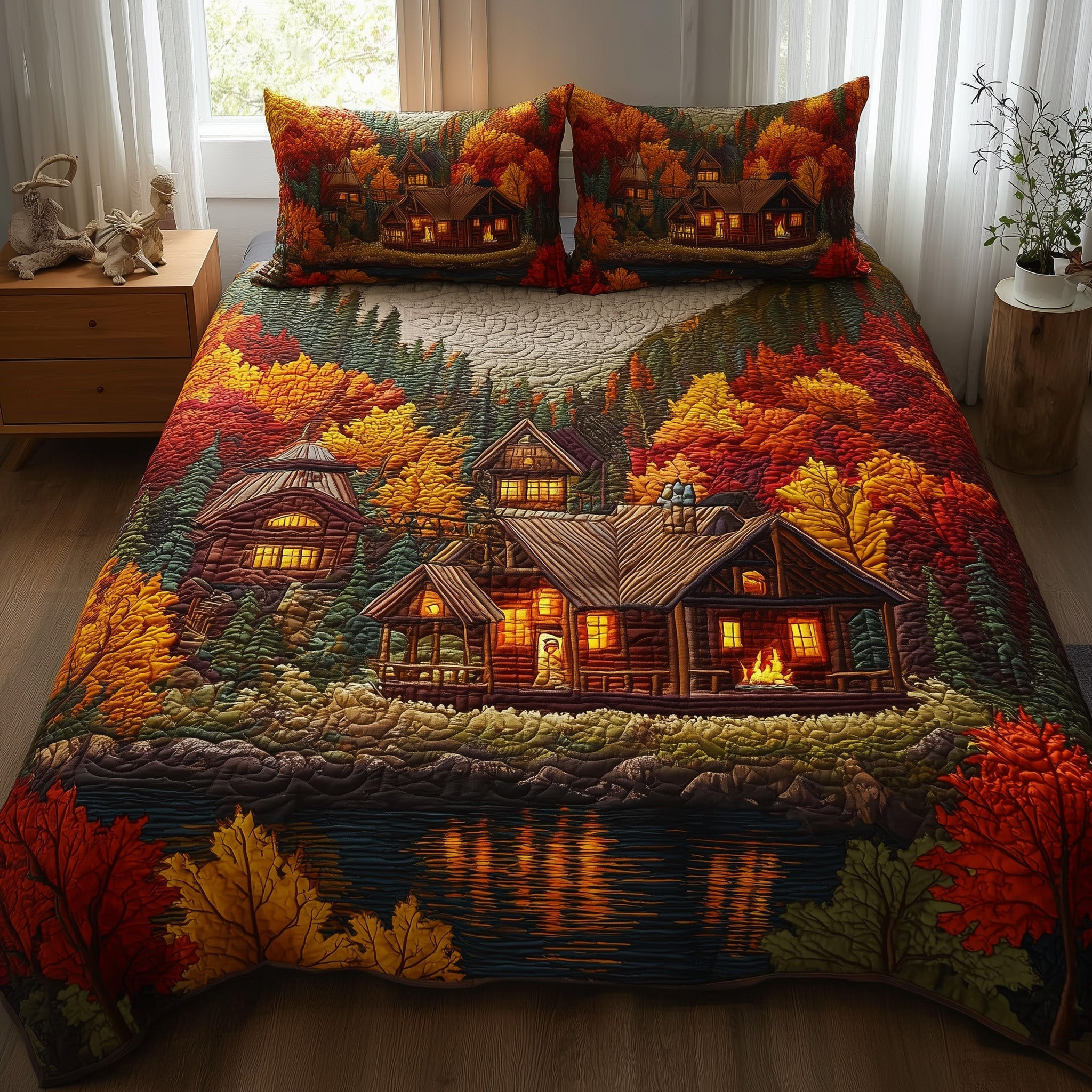 $79.95 – $109.95Price range: $79.95 through $109.95Autumn Cabin Glow Quilted Bedding Set Duvet Cover Log Cabin Gifts For Autumn Lovers