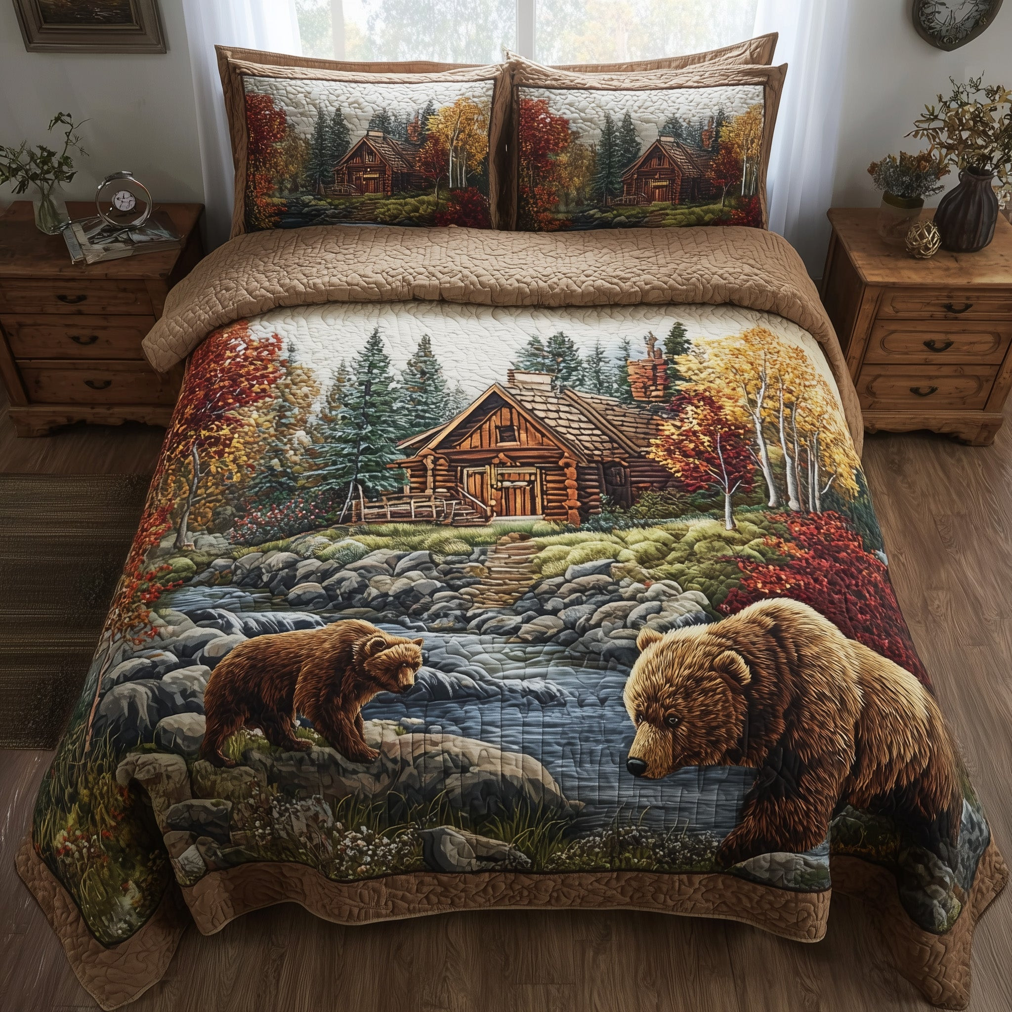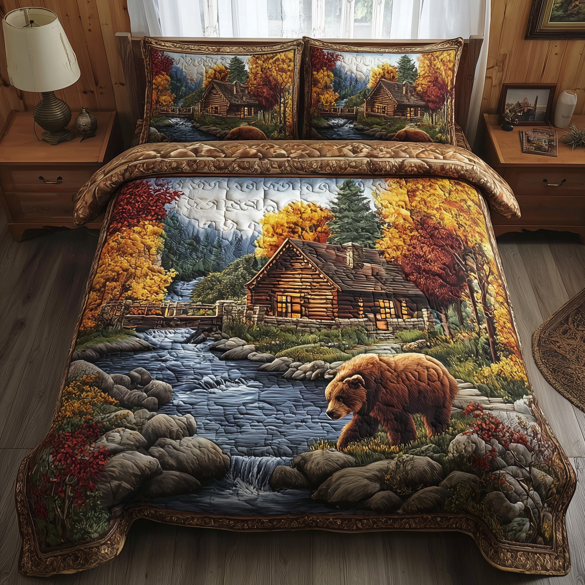 $79.95 – $109.95Price range: $79.95 through $109.95Autumn Cabin Glow Quilted Bedding Set Duvet Cover Log Cabin Gifts For Bear Lovers