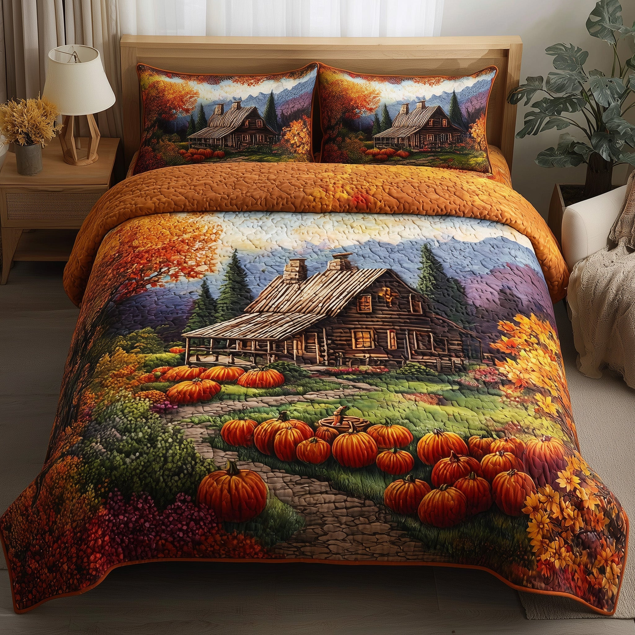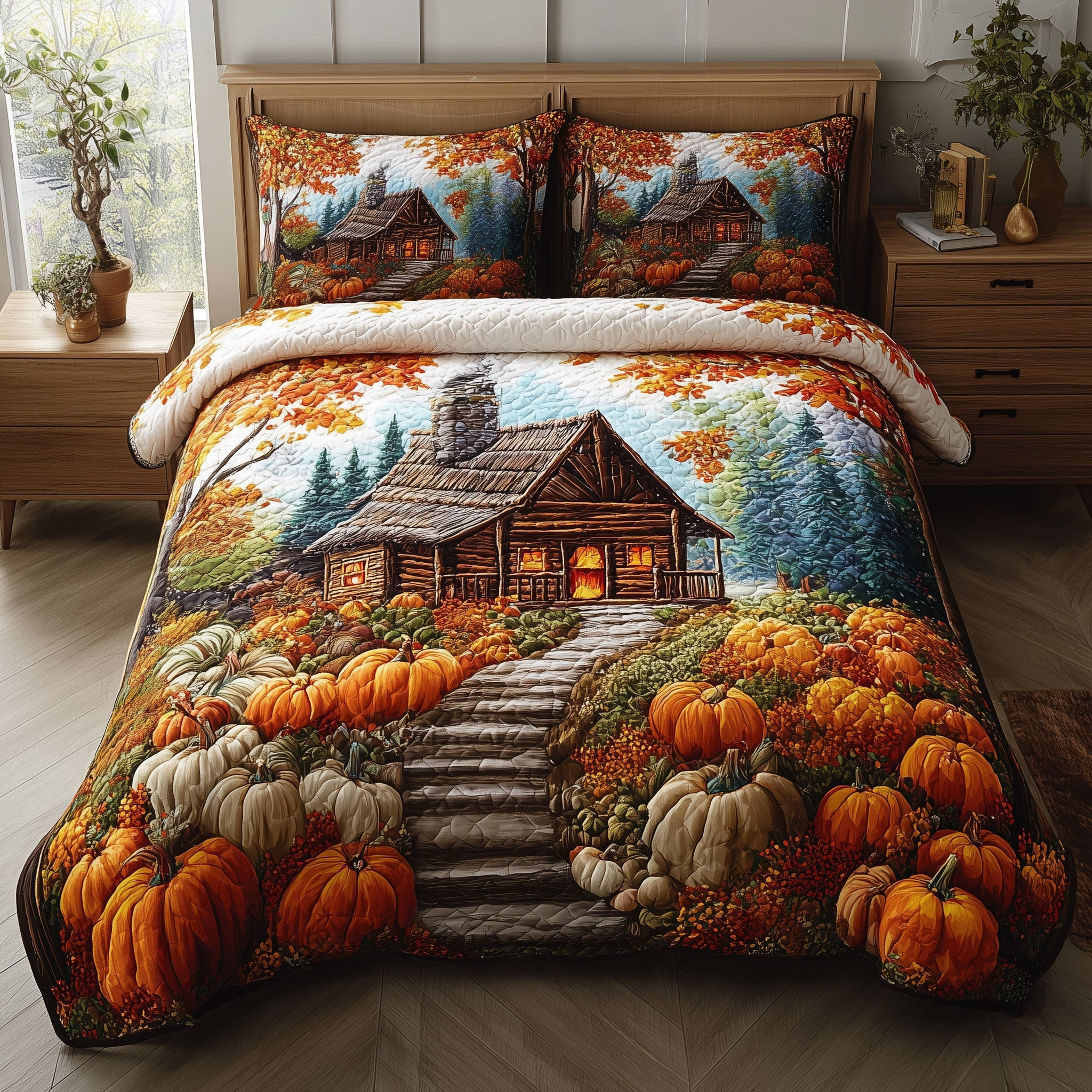 $79.95 – $109.95Price range: $79.95 through $109.95Autumn Cabin Glow Quilted Bedding Set Duvet Cover Log Cabin Pumpkin Autumn Themed Gifts