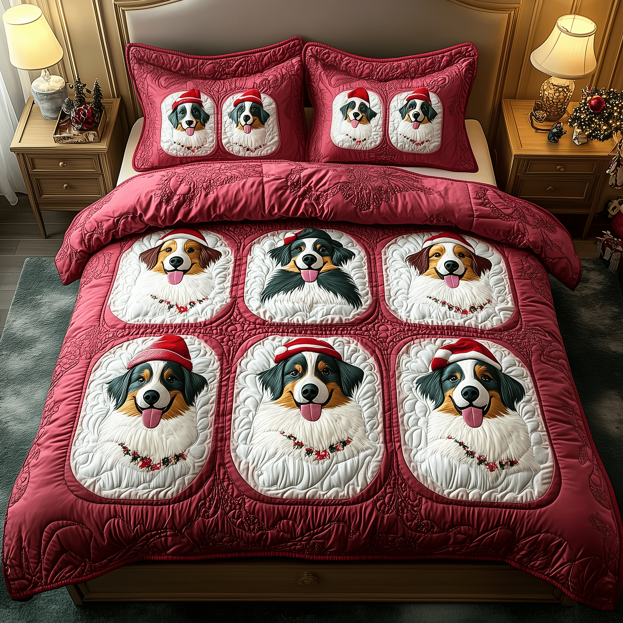 $79.95 – $109.95Price range: $79.95 through $109.95Christmas Australian Shepherd Quilted Bedding Set Xmas Bedding Set Unique Christmas Gifts For Parents