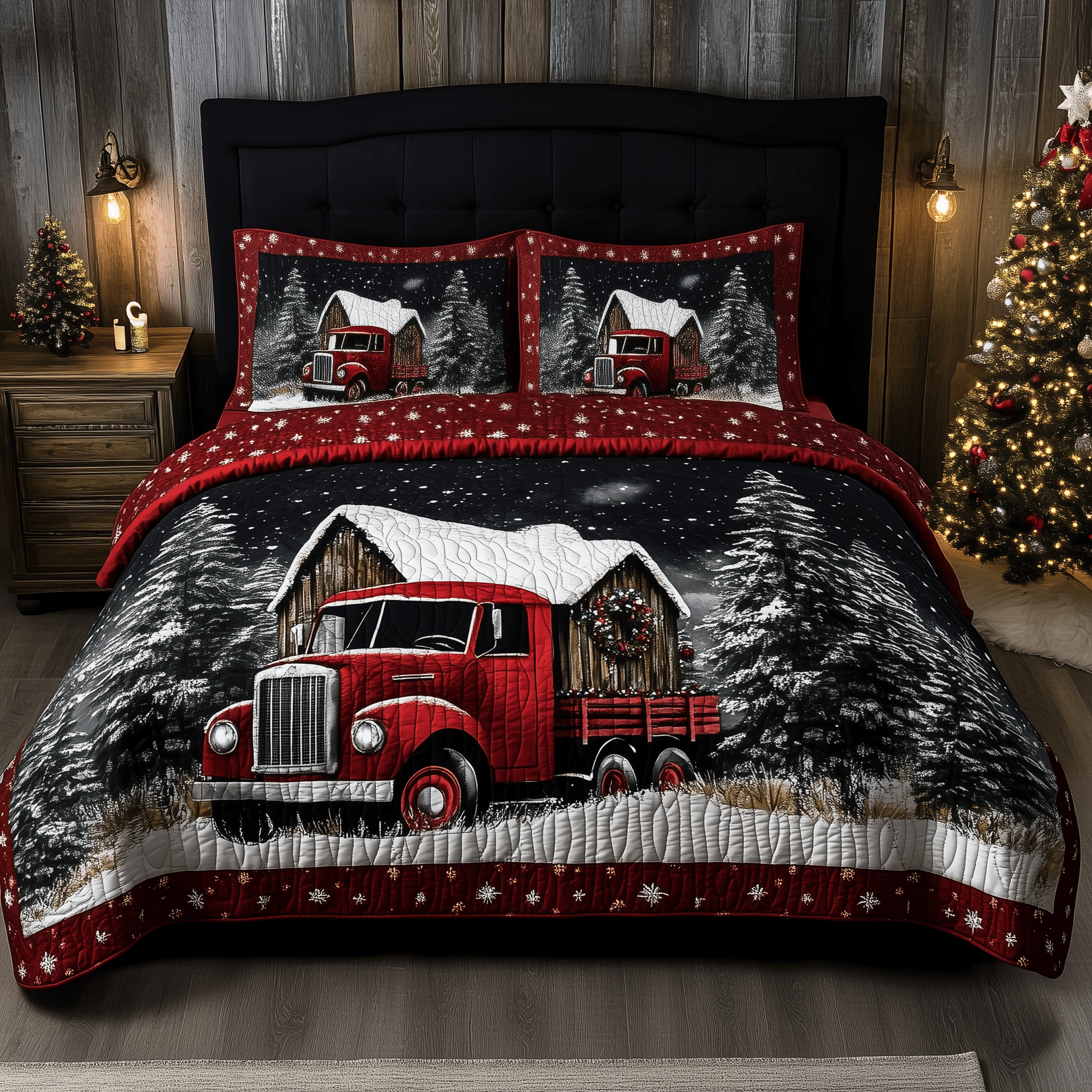 Christmas Truck Quilted Bedding Set Xmas Bedding Set Best Christmas Gifts 2024 For Truckers