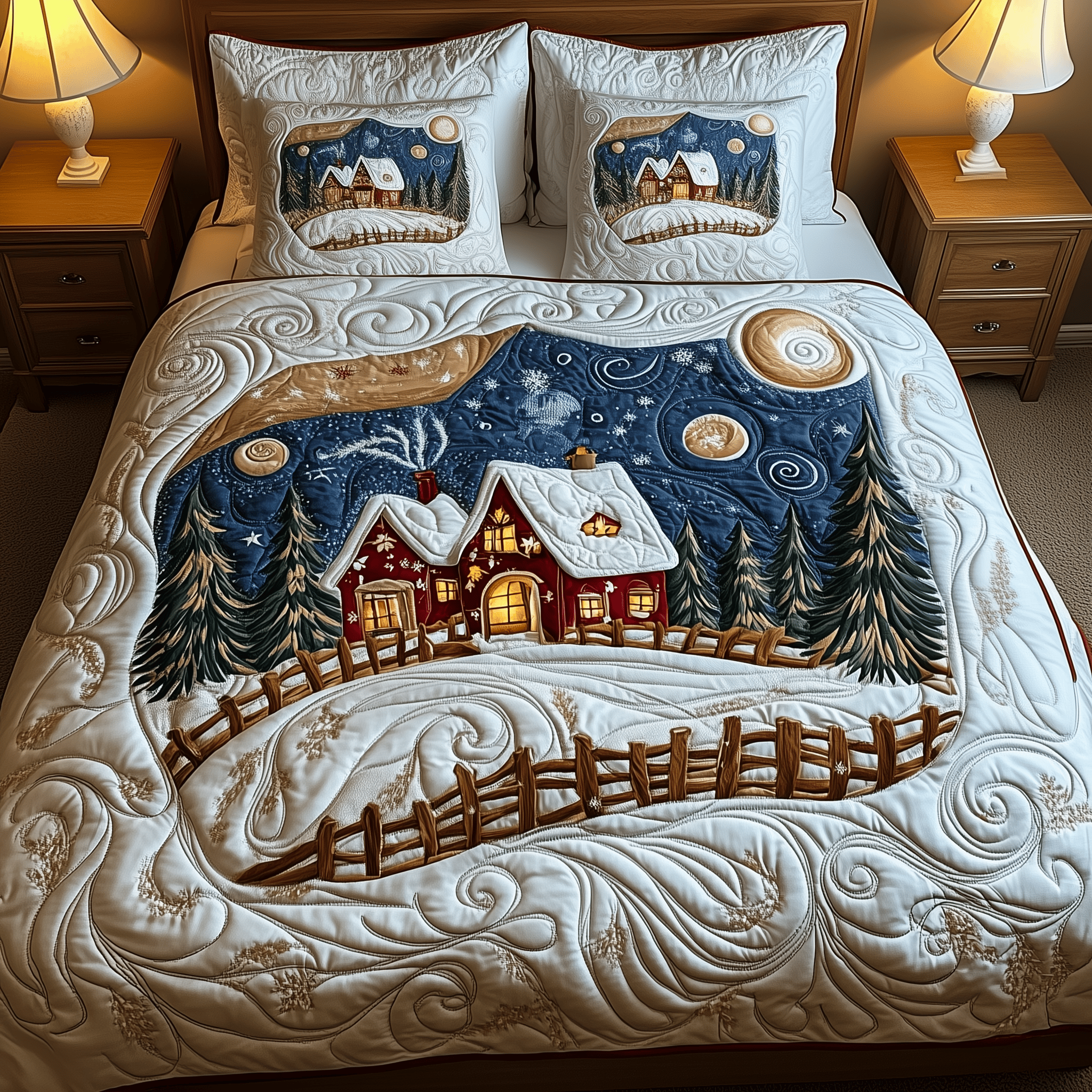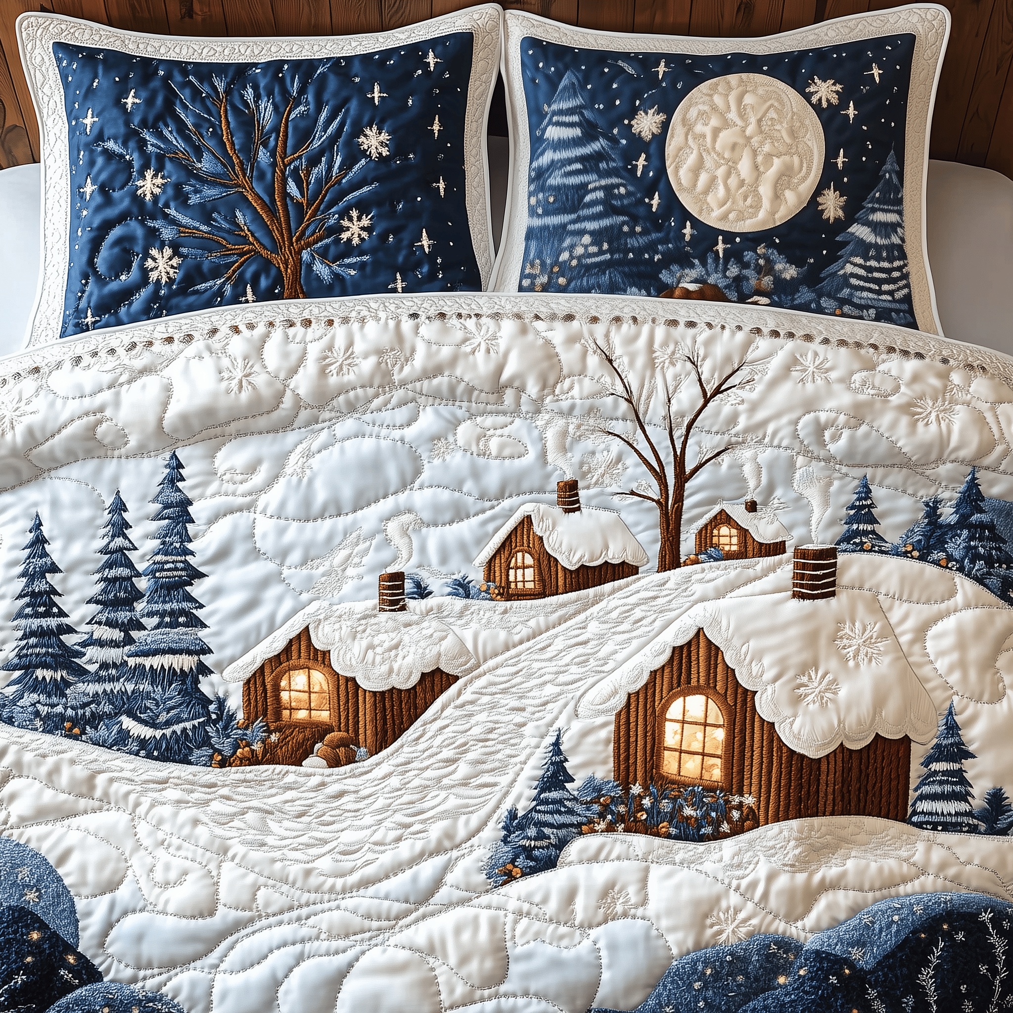 Christmas Villag Quilted Bedding Set Duvet Cover Bedspread Gifts For Christmas