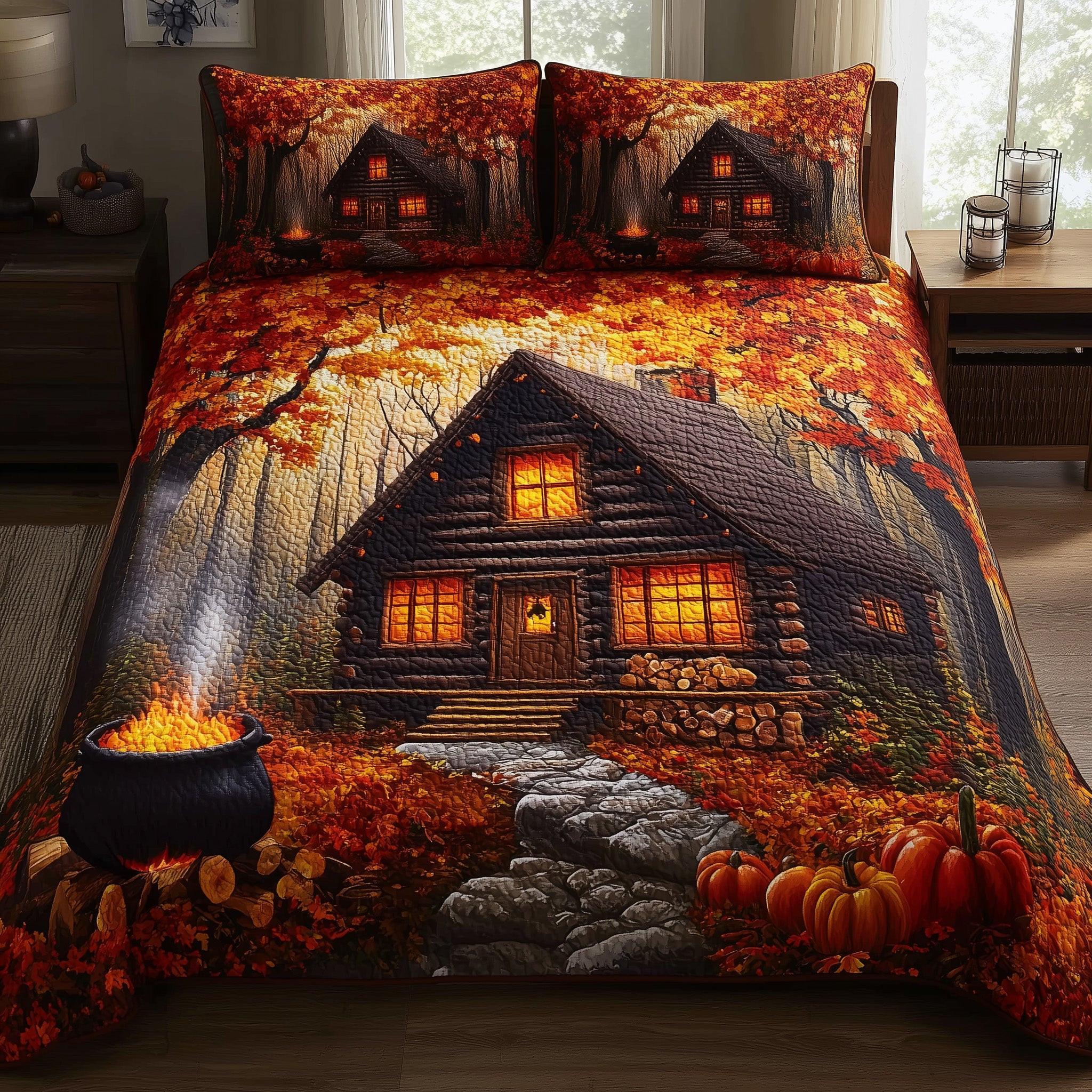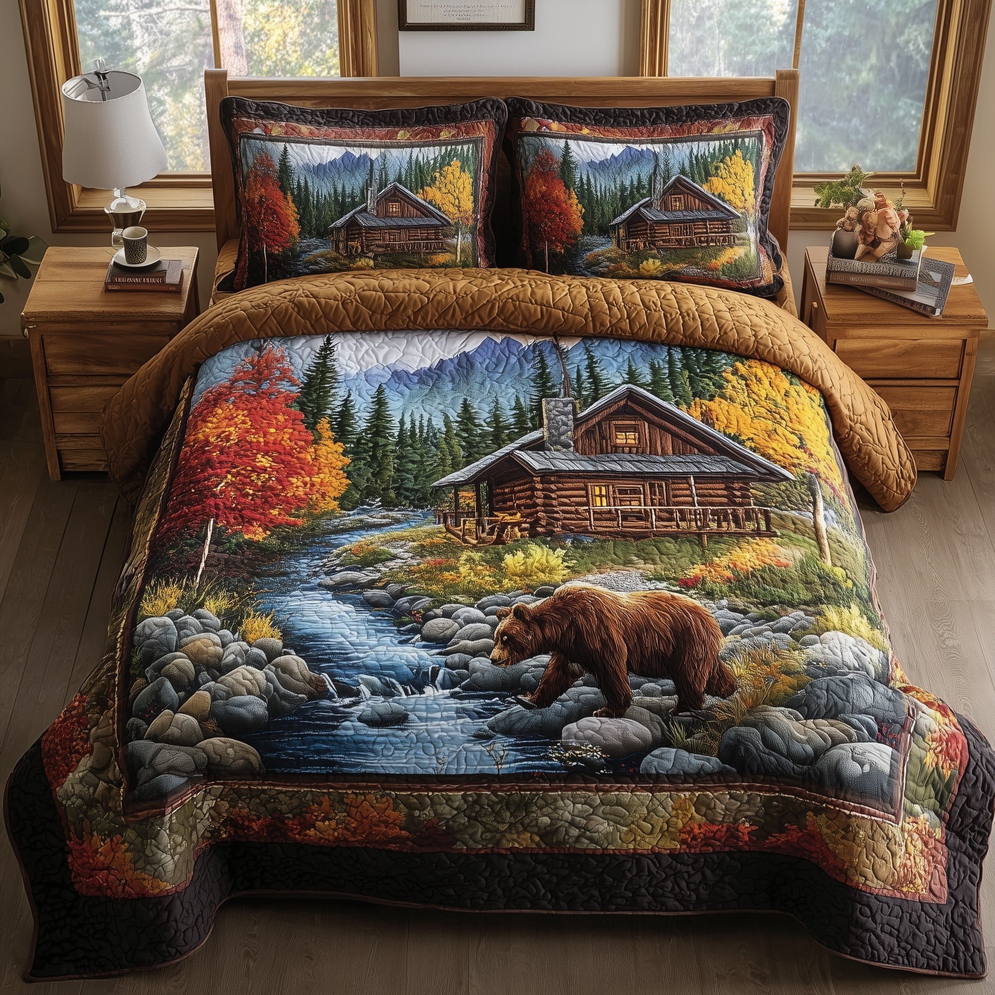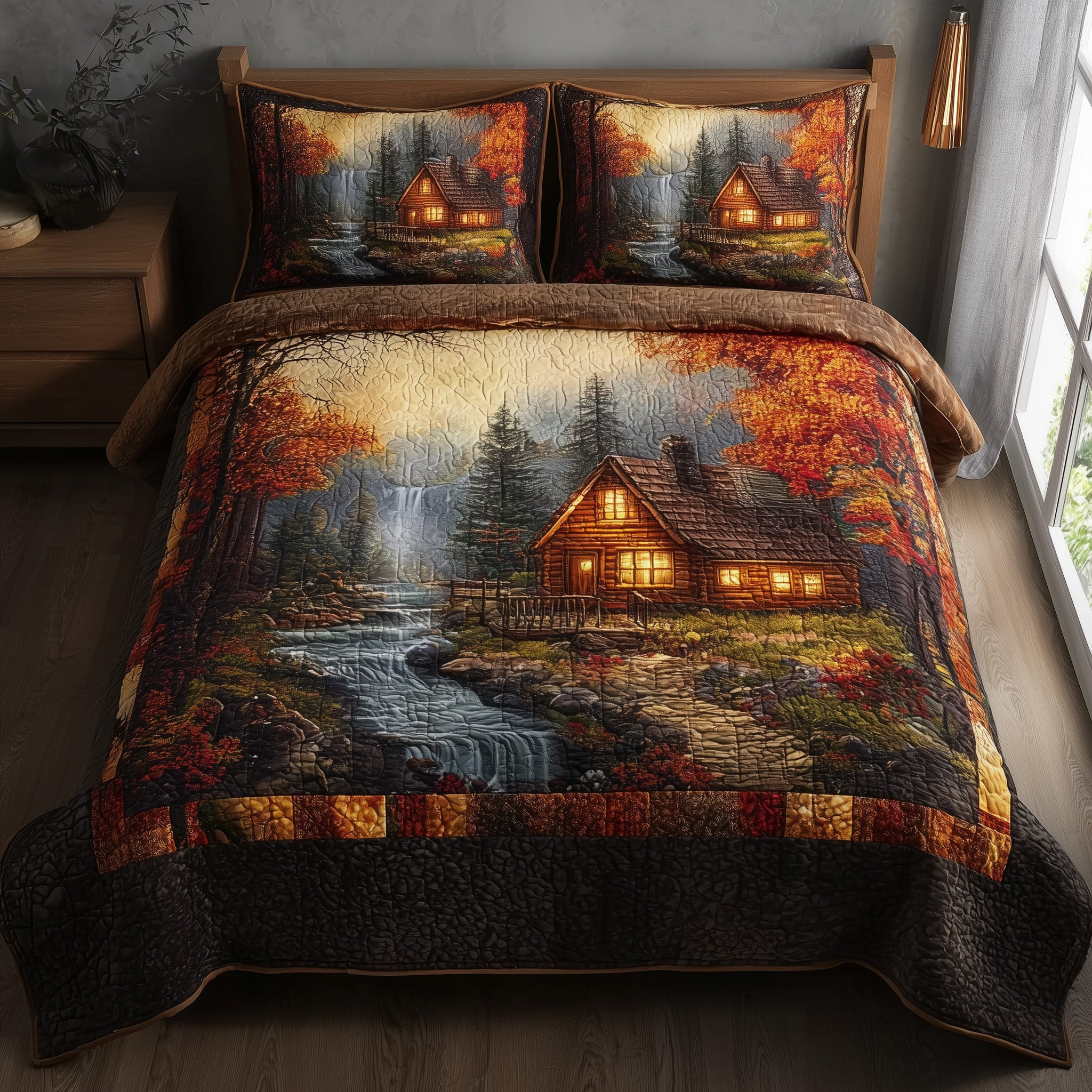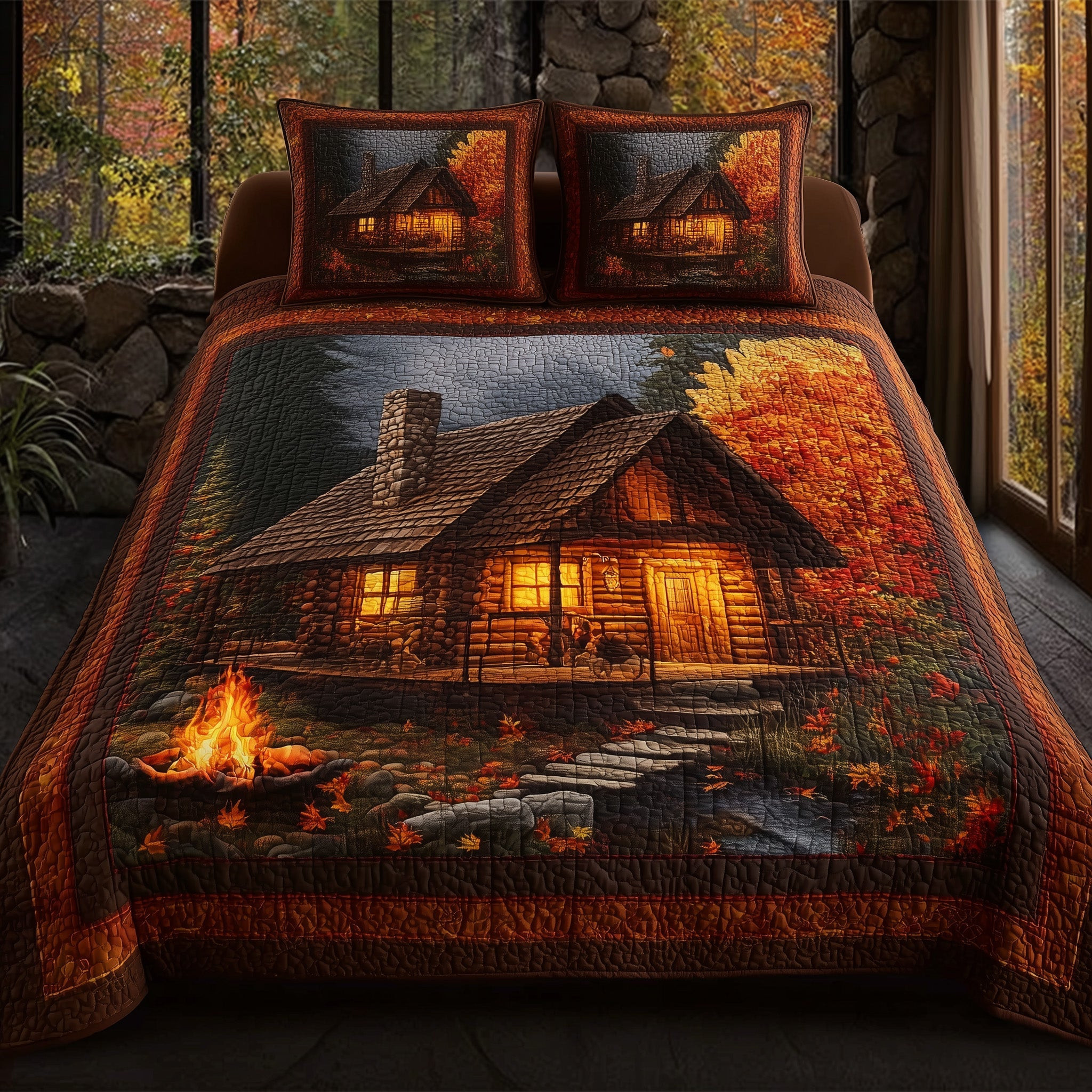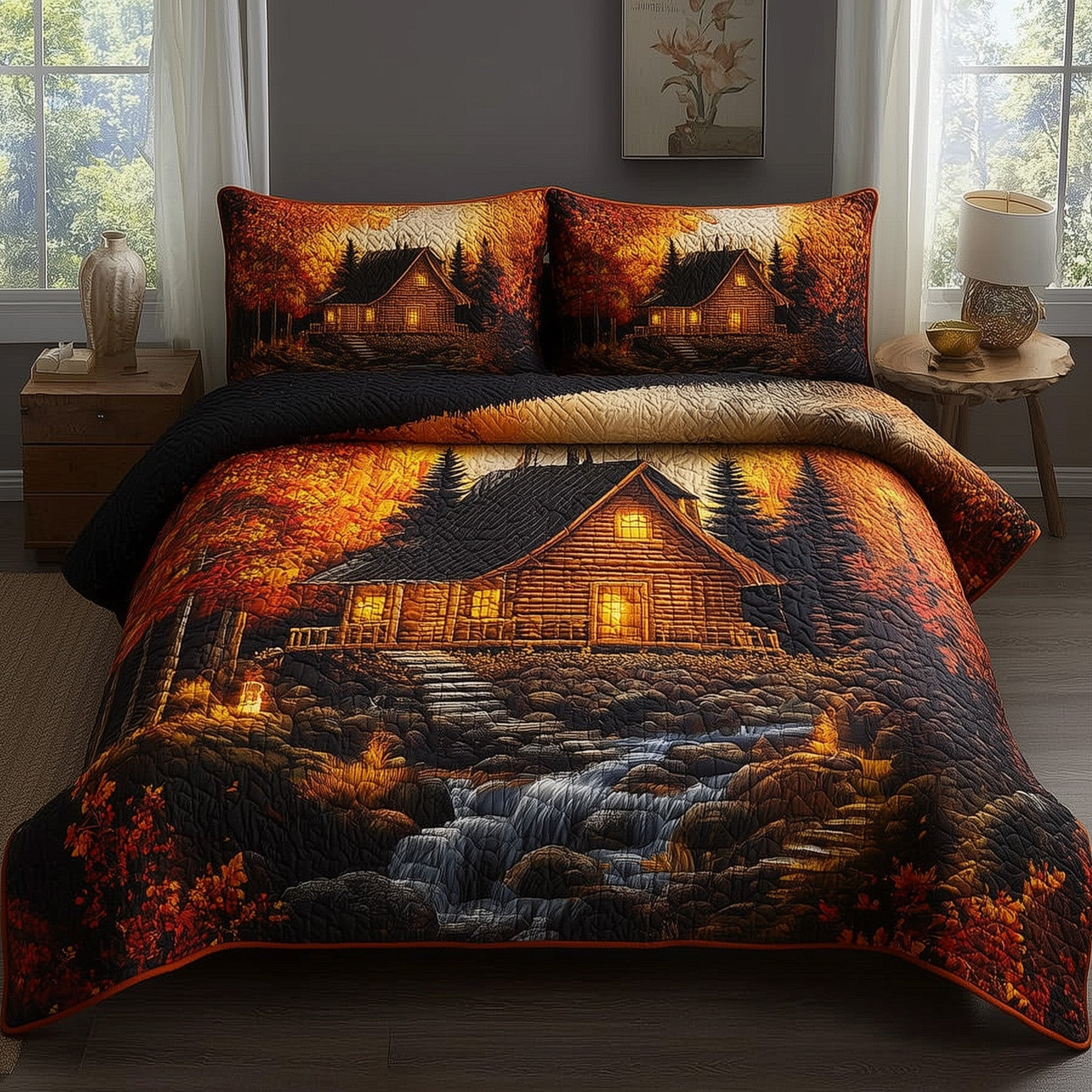 Autumn Cabin Quilted Bedding Set Bedroom Decor Gifts For Autumn Lovers