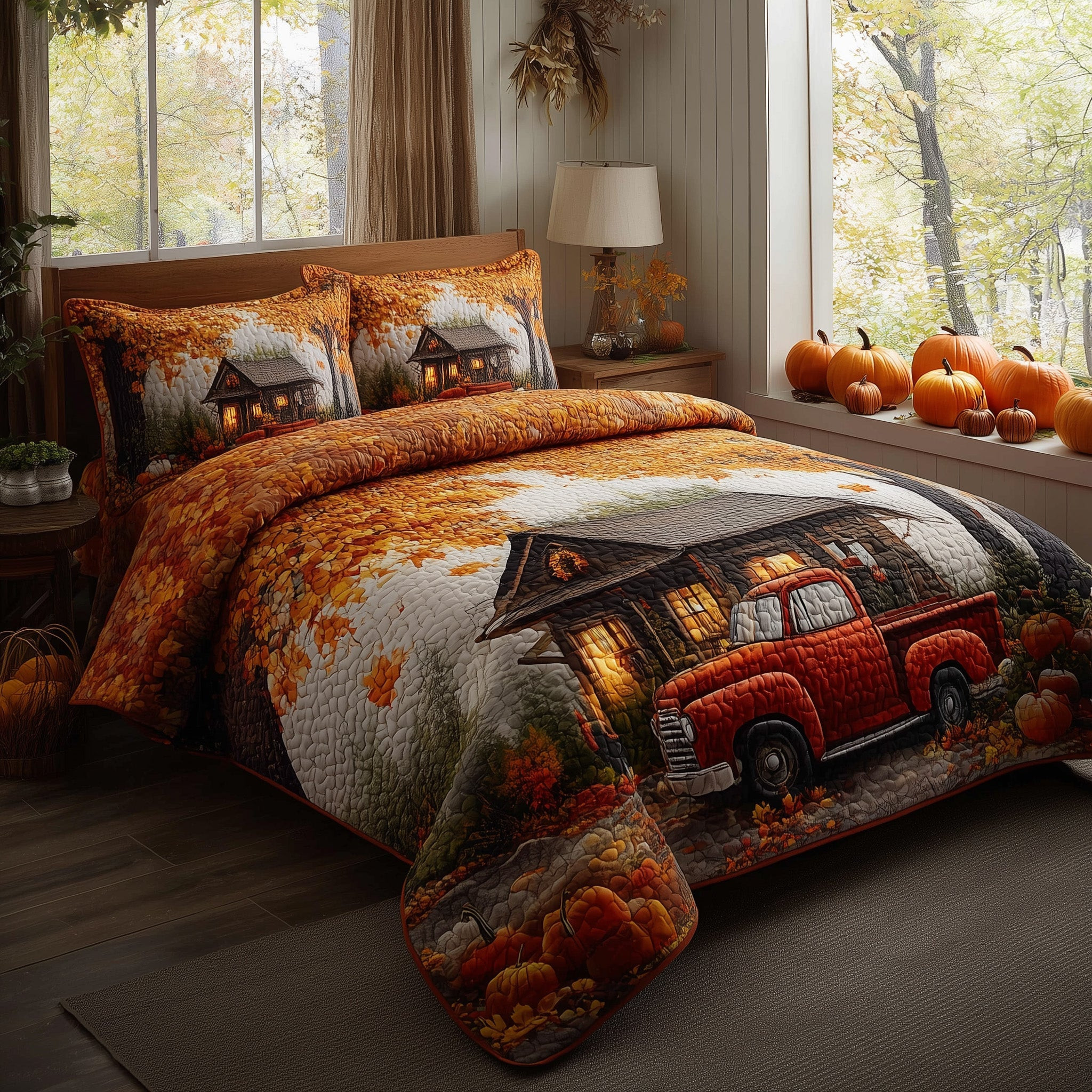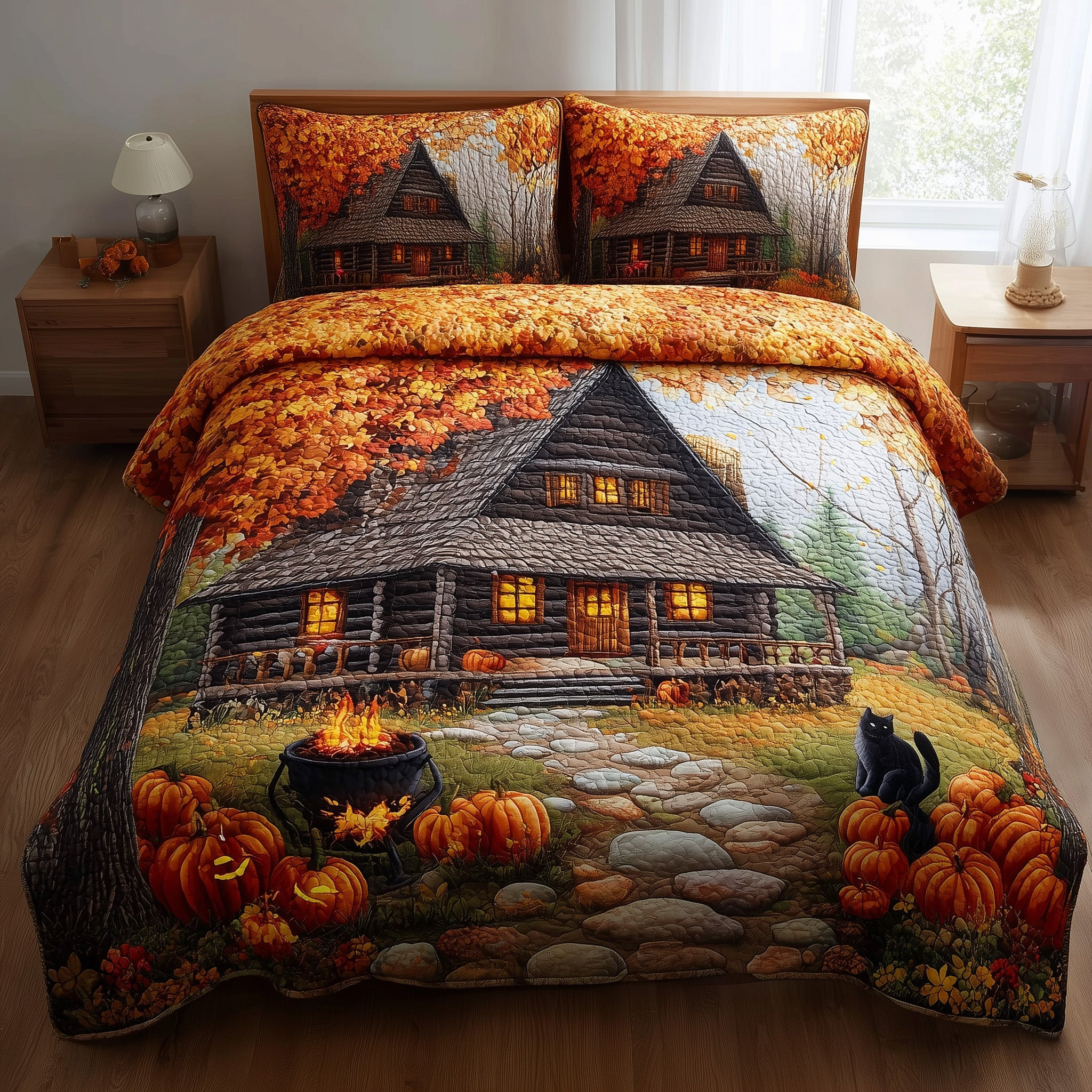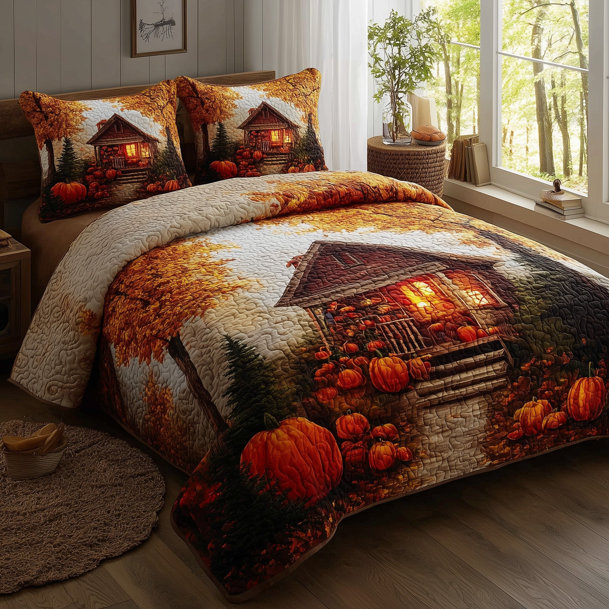 Autumn Cabin Quilted Bedding Set Bedroom Decor Farmhouse Gifts For Autumn Lovers