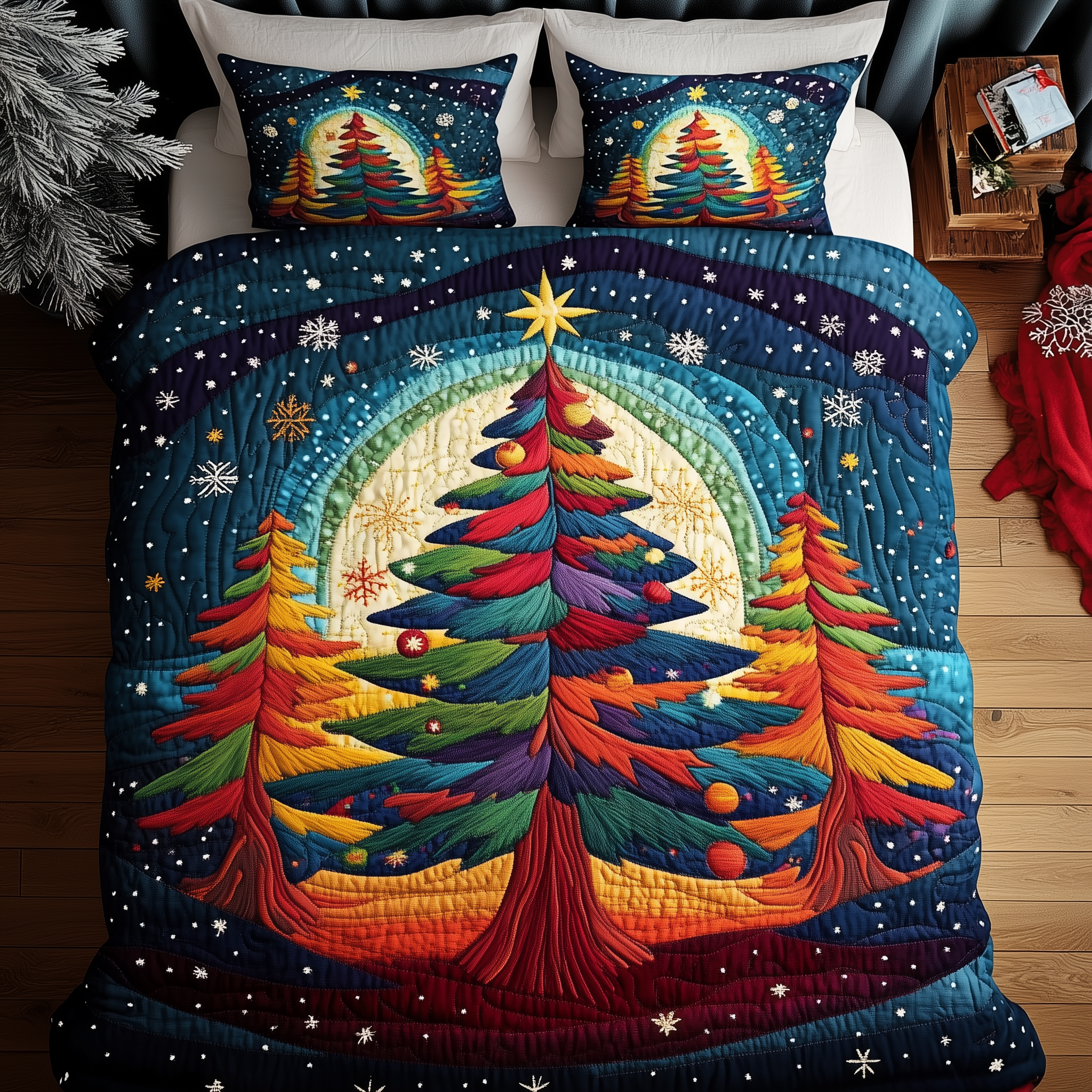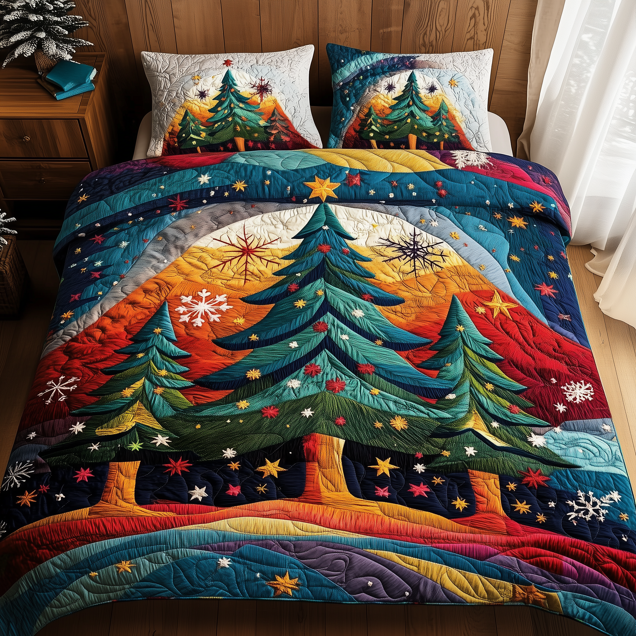 Colorful Christmas Tree Quilted Bedding Set Christmas Bedding Set Funny Gift Experiences For Couples