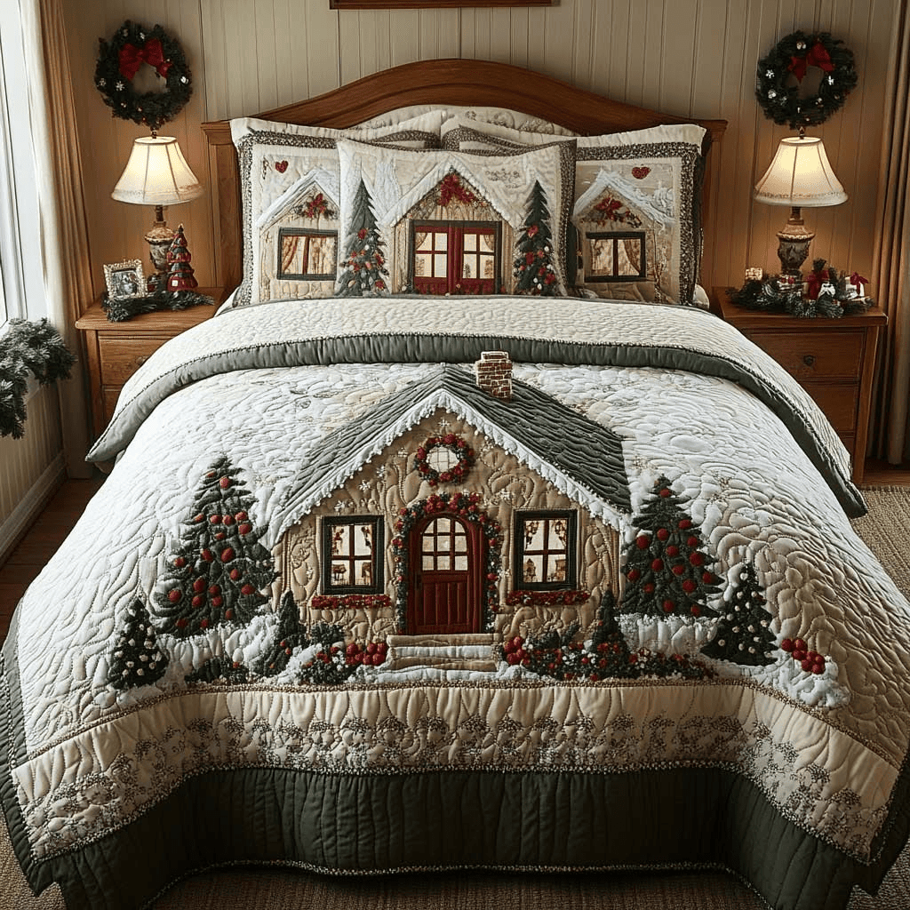 $79.95 – $109.95Price range: $79.95 through $109.95Cottage Christmas Quilt Bedding Set Snowy Winter Comforter Sets Holiday Presents Ideas
