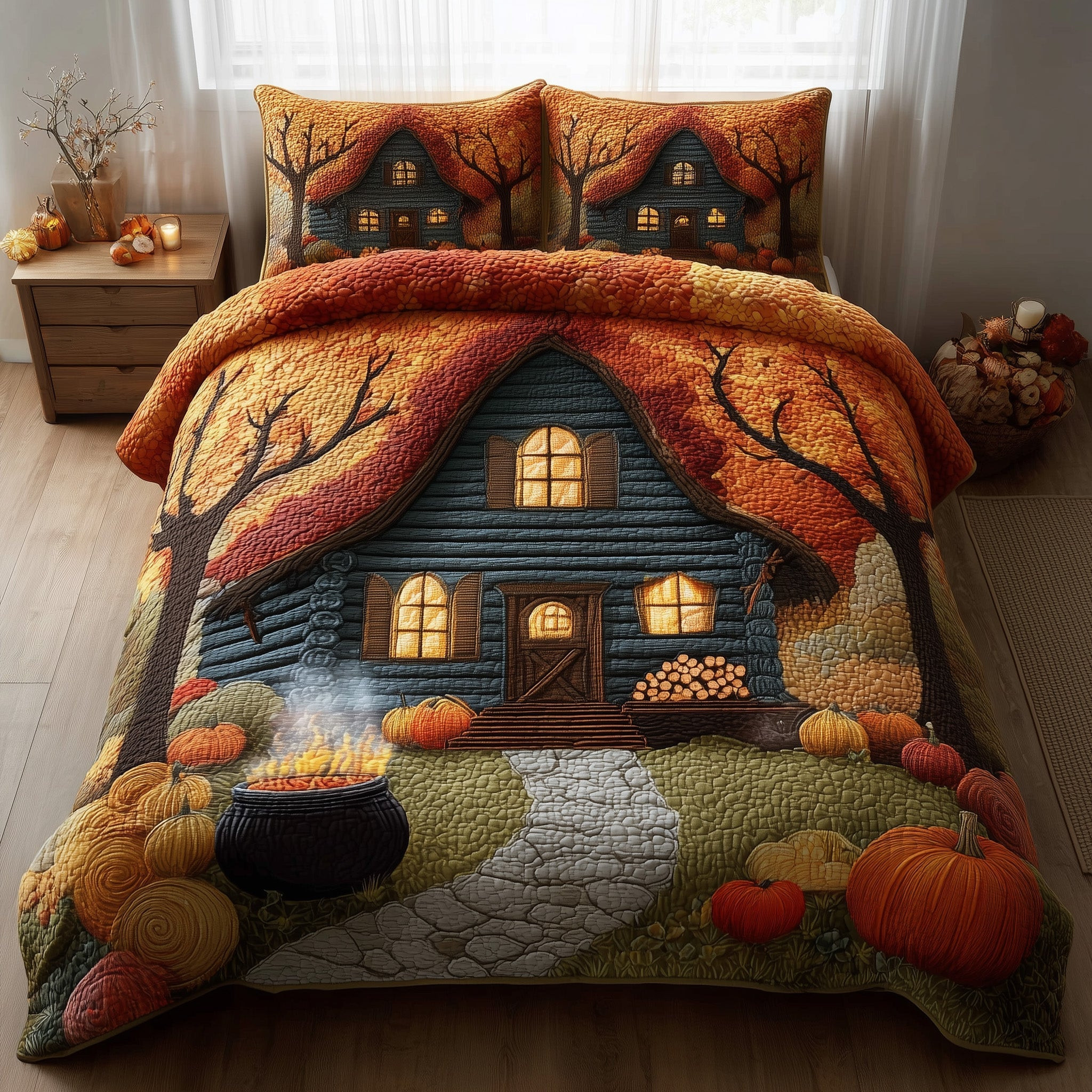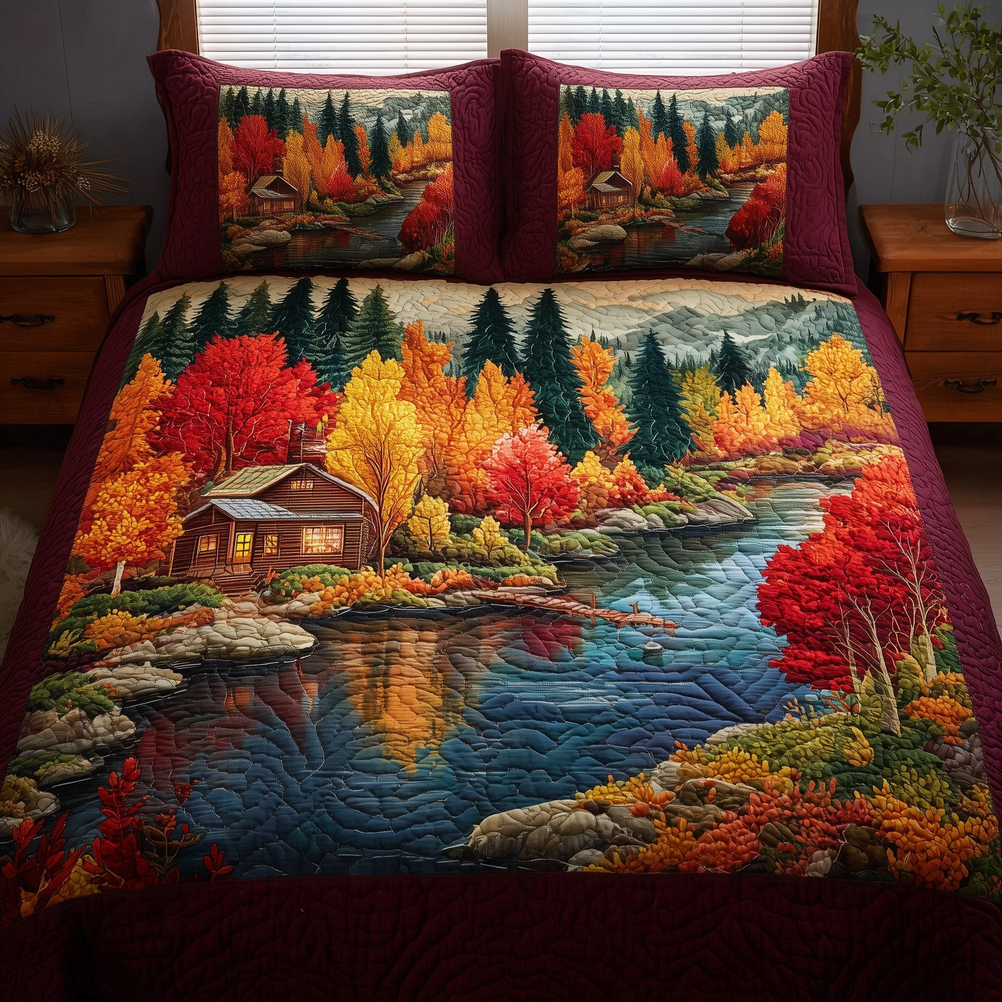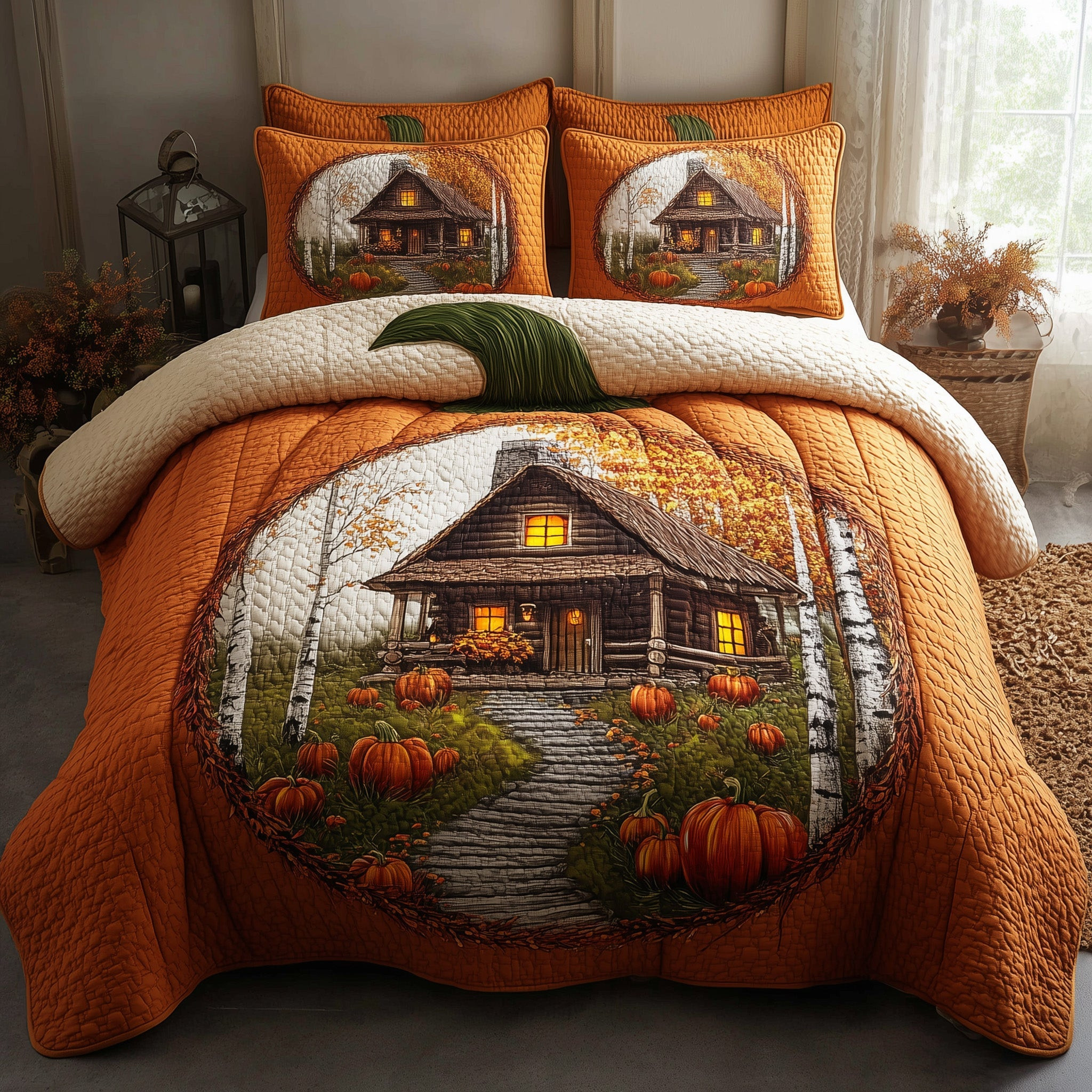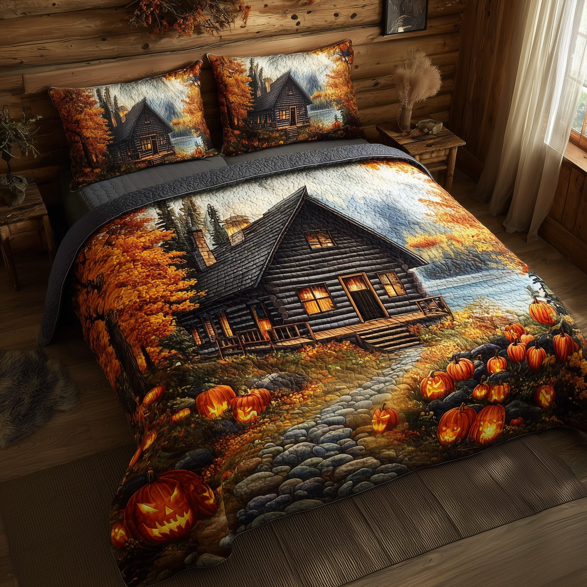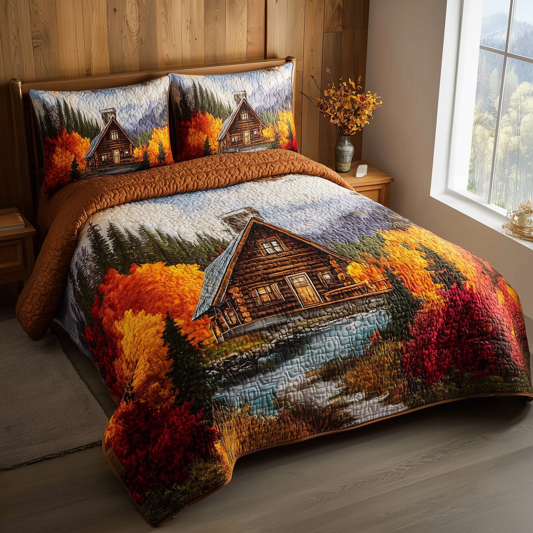 Autumn Cabin Quilted Bedding Set Duvet Cover Bedspread Autumn Gift Ideas