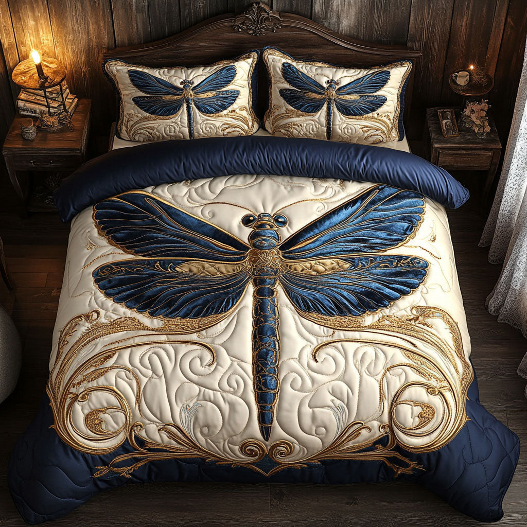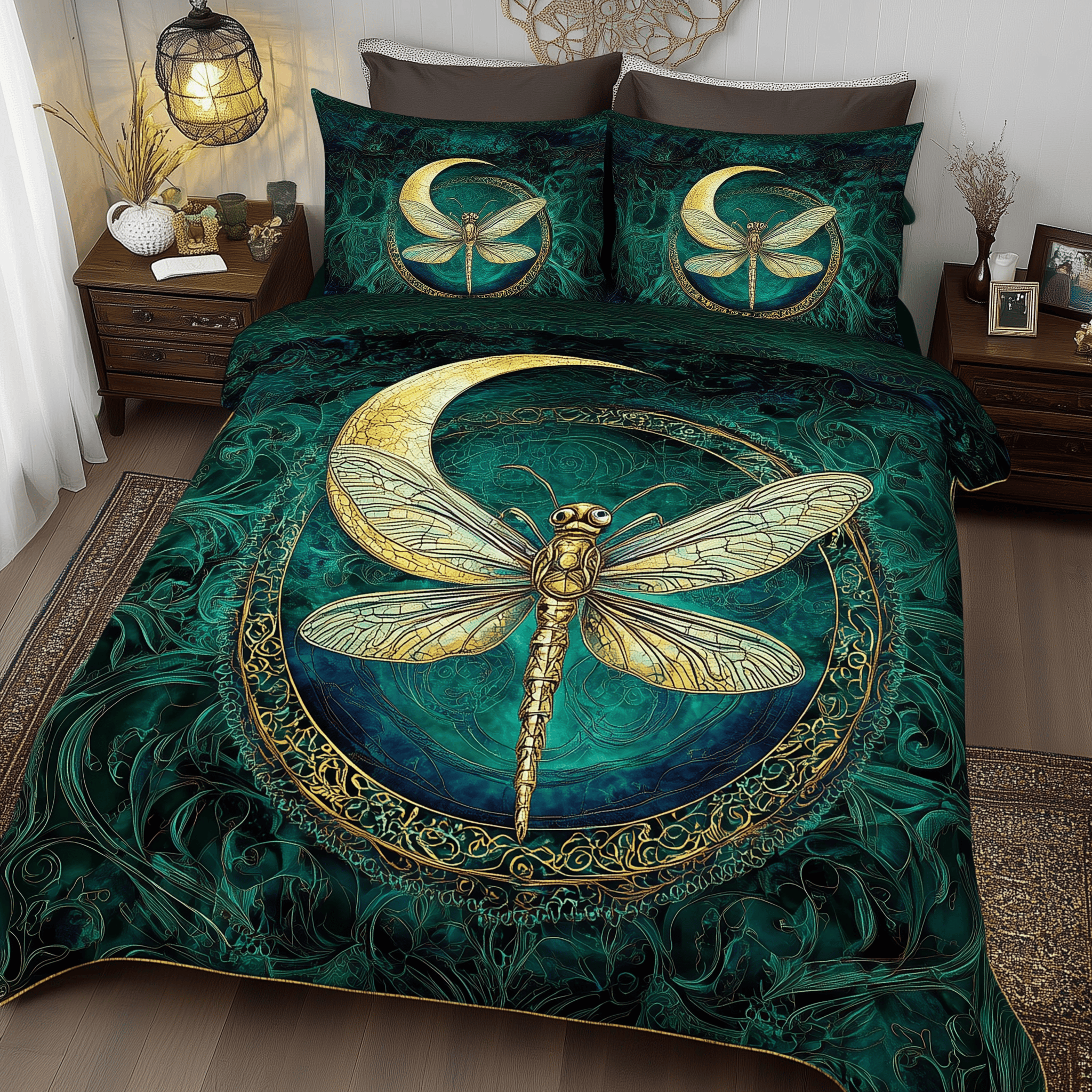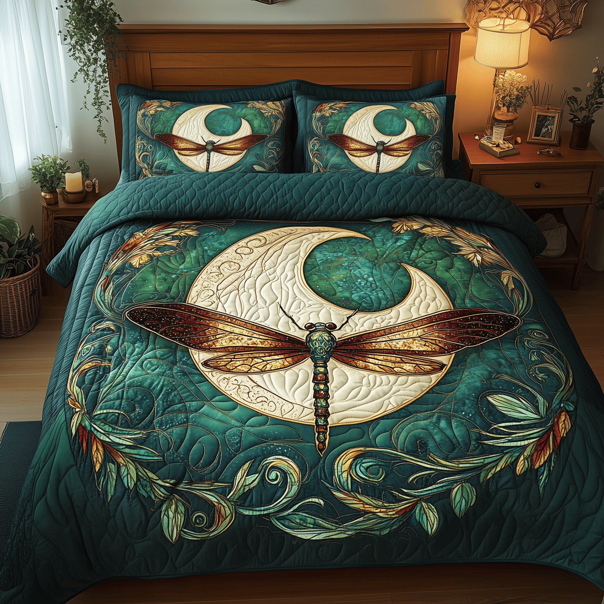 Dragonfly and Crescent Moon Quilted Bedding Set Xmas Bedding Set Romantic Christmas Gifts