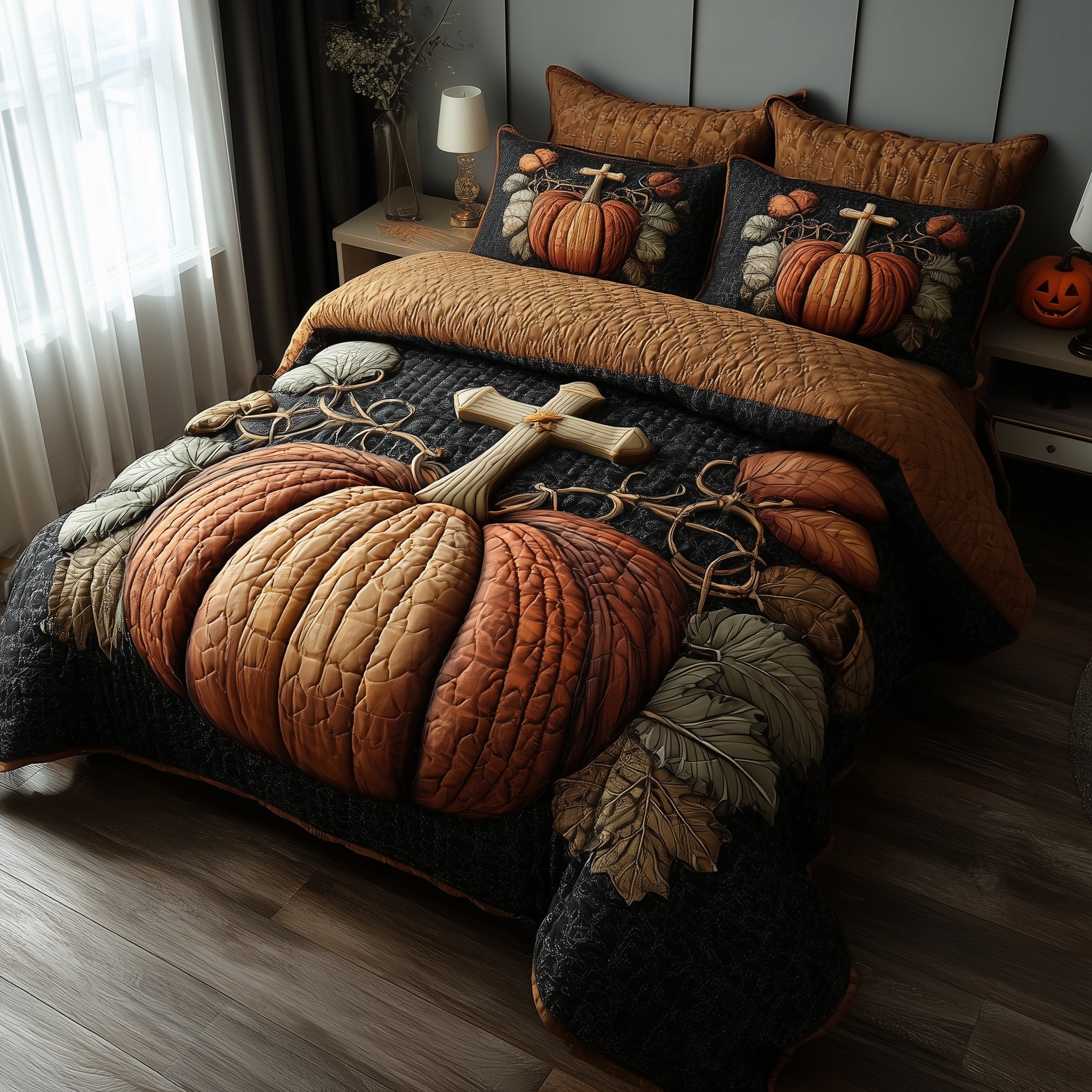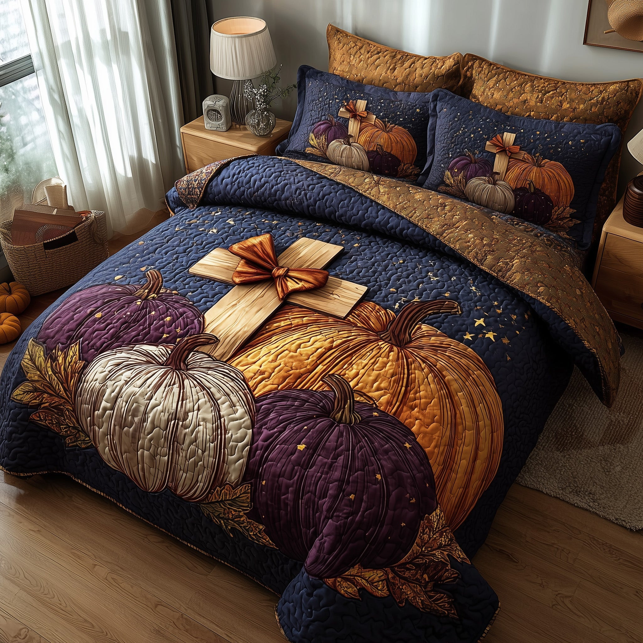 Fall for Jesus Quilted Bedding Set Duvet Set Bed Autumn Pumpkin Cross Christian Gift Ideas