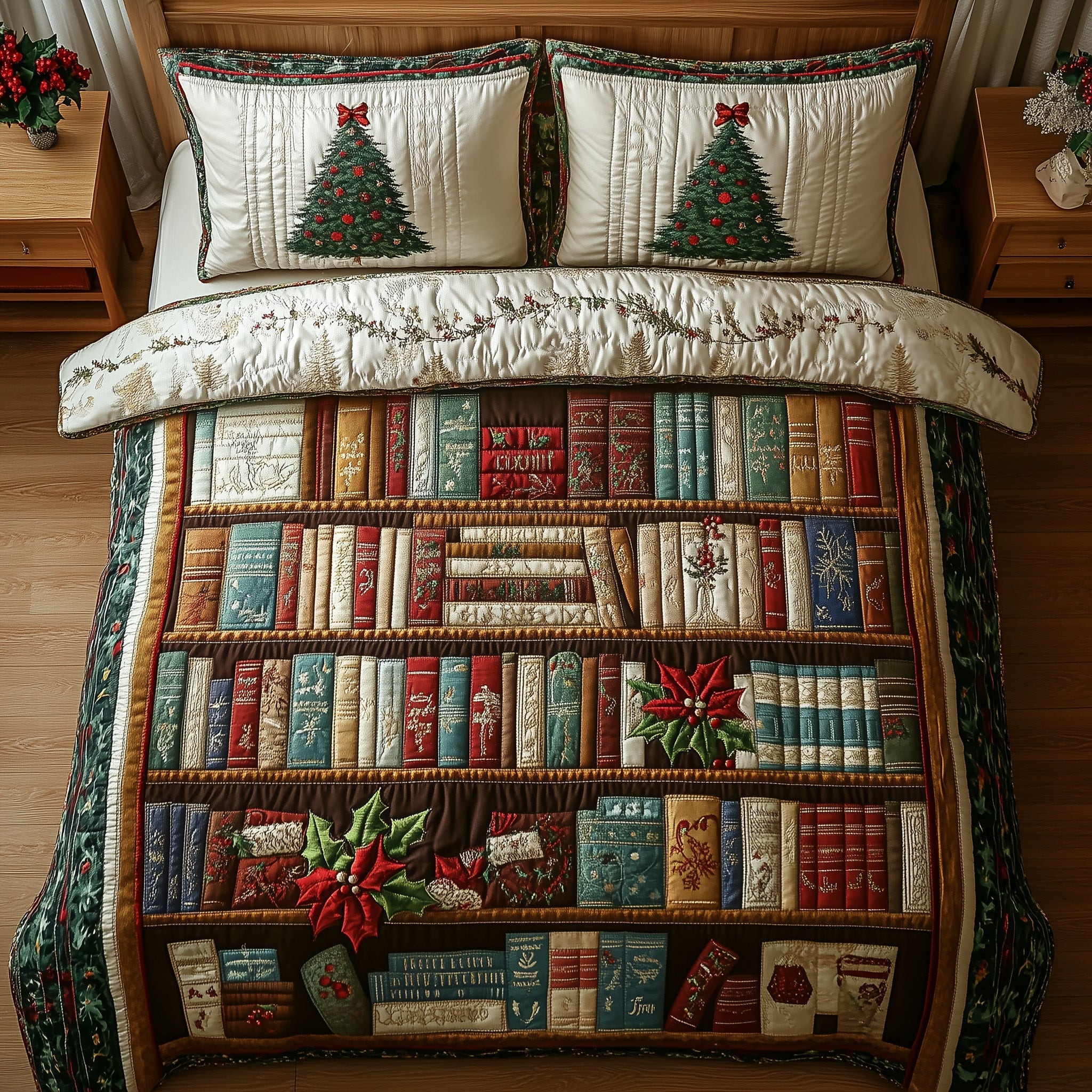 Festive Bookish Christmas Quilted Bedding Set Duvet Cover Bedspread Xmas Theme Gift Ideas For Book Lovers