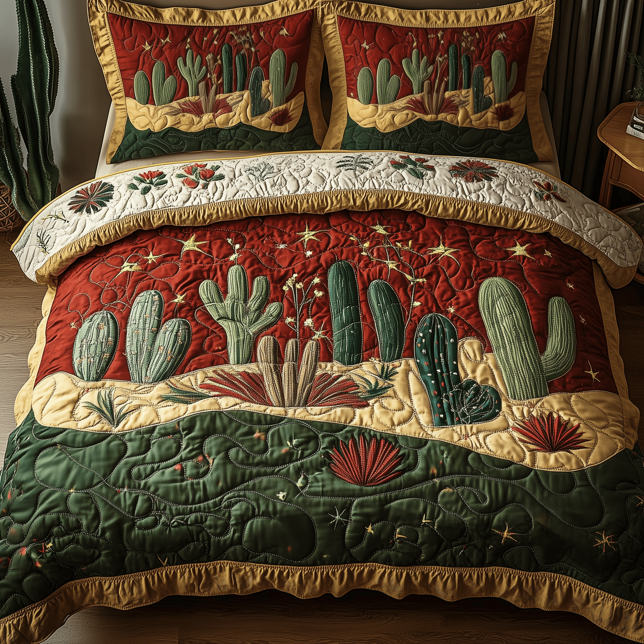Festive Cactus Quilted Bedding Set Christmas Bedding Set Christmas Gifts For Couples