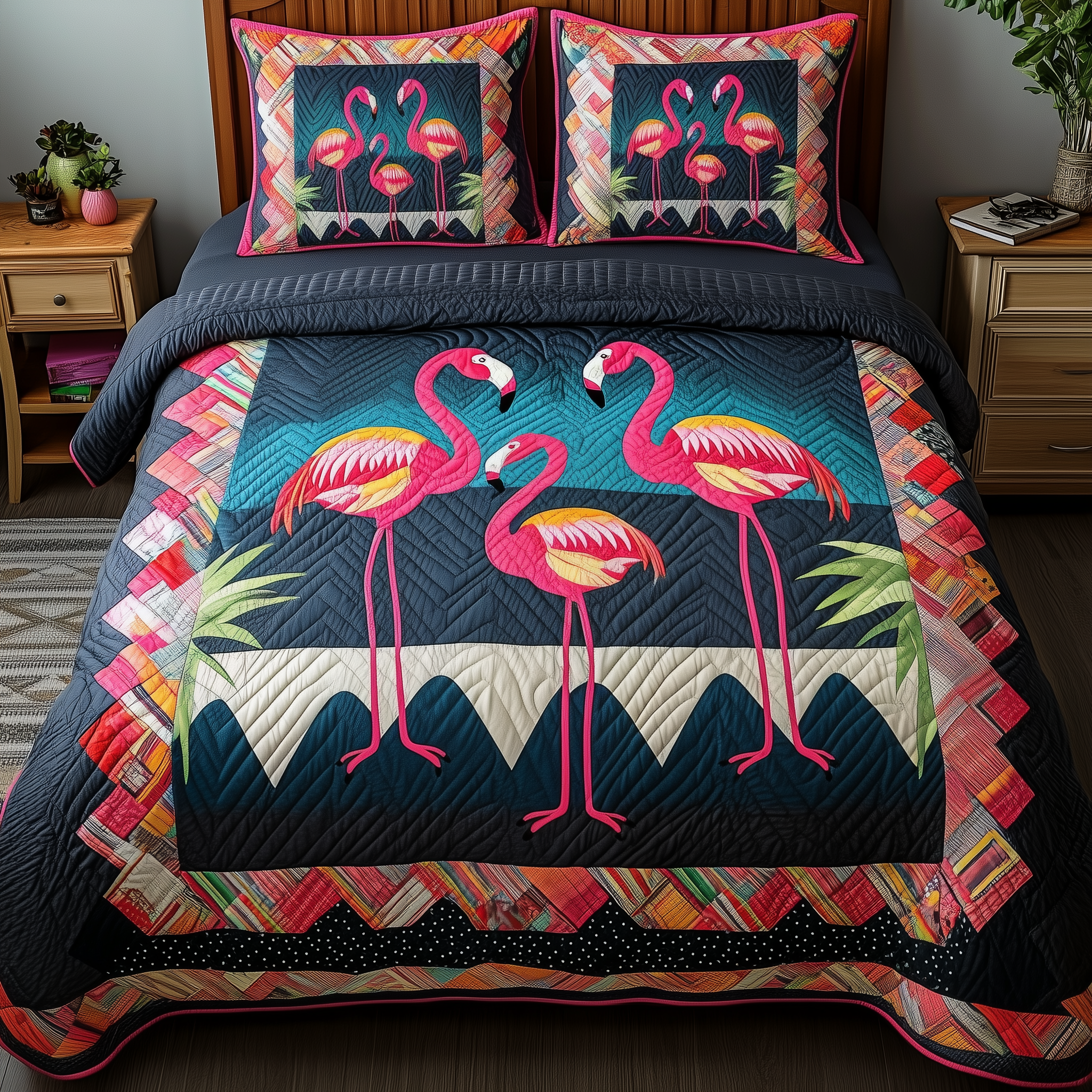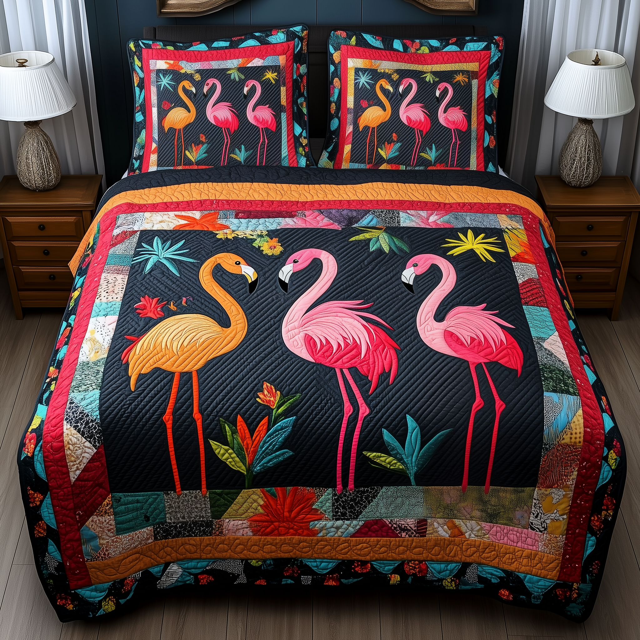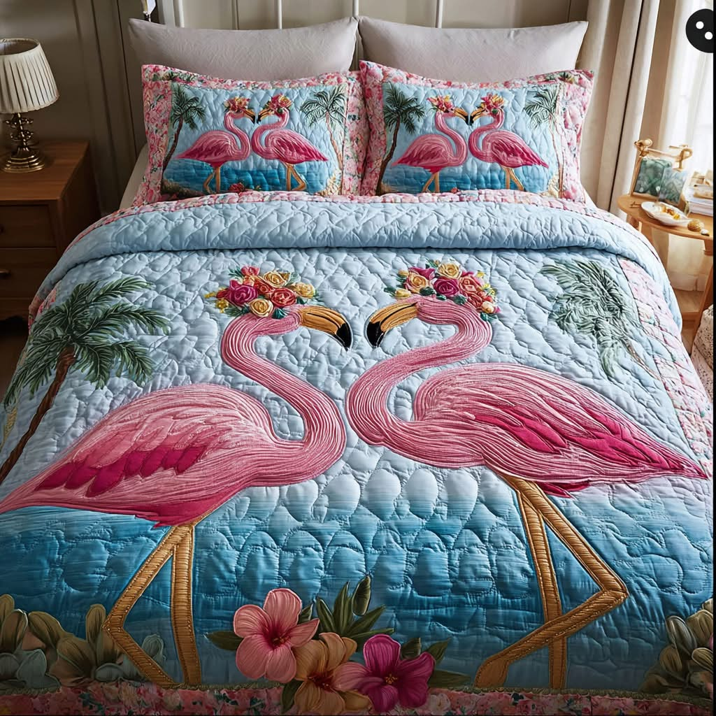 Flamingo Quilted Bedding Set Christmas Bedding Set 2024 Unique Christmas Gifts