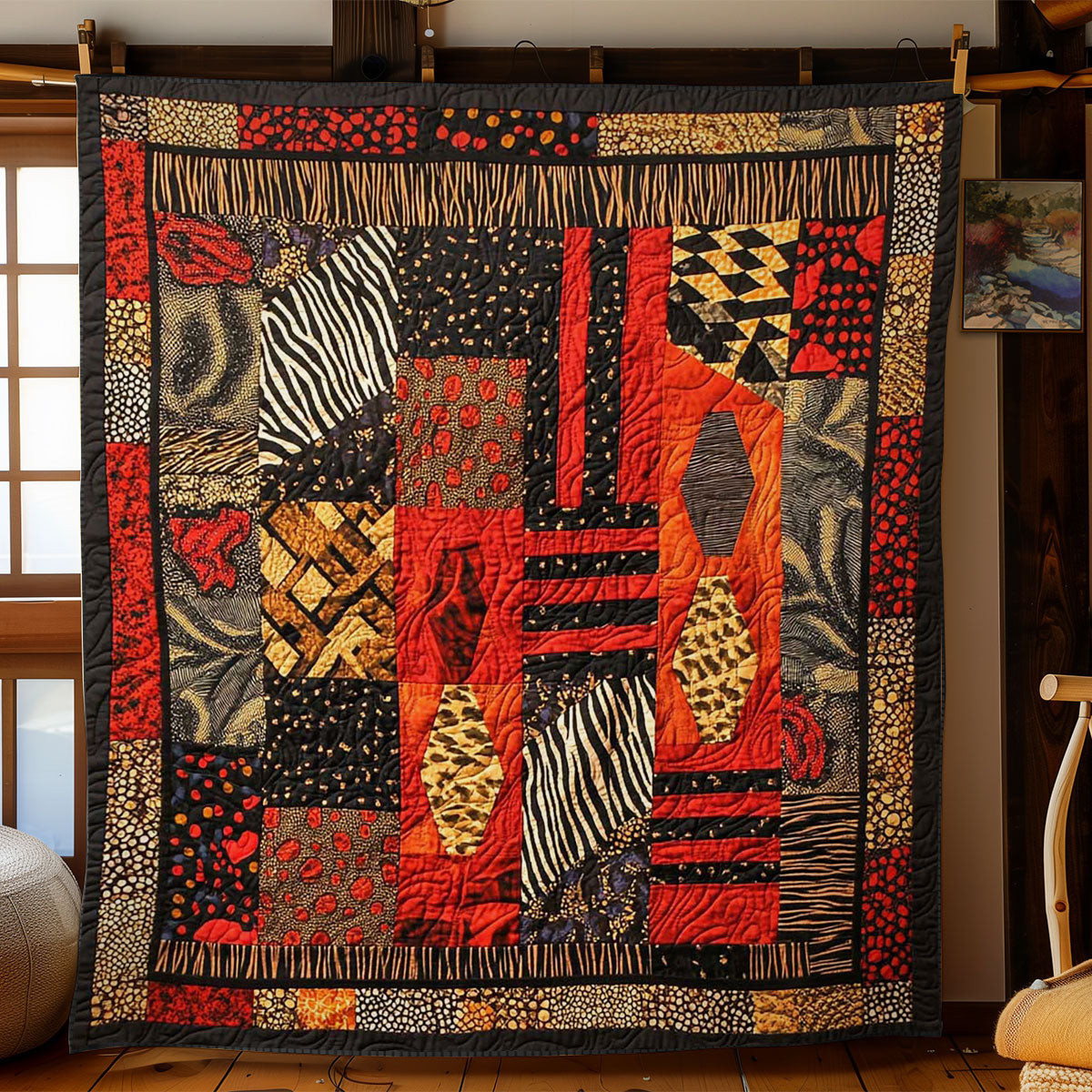 Primal Patterns Quilt Blanket African Art Throw Blanket Animal Leather Patchwork Gift Ideas