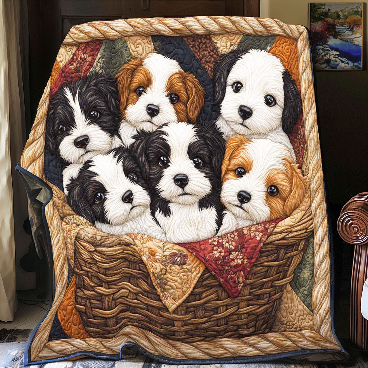 $55.95 – $99.95Price range: $55.95 through $99.95Puppy In Basket Quilt Blanket Fluffy Throw Blanket Sweet Gifts For Puppy Lovers