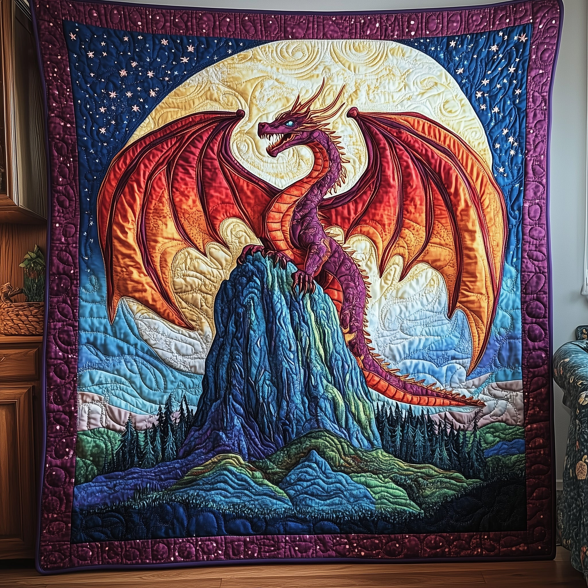 $55.95 – $99.95Price range: $55.95 through $99.95Purple Dragon Quilted Blanket Mythical Creature Fantasy Best Gifts For Dragon Lovers