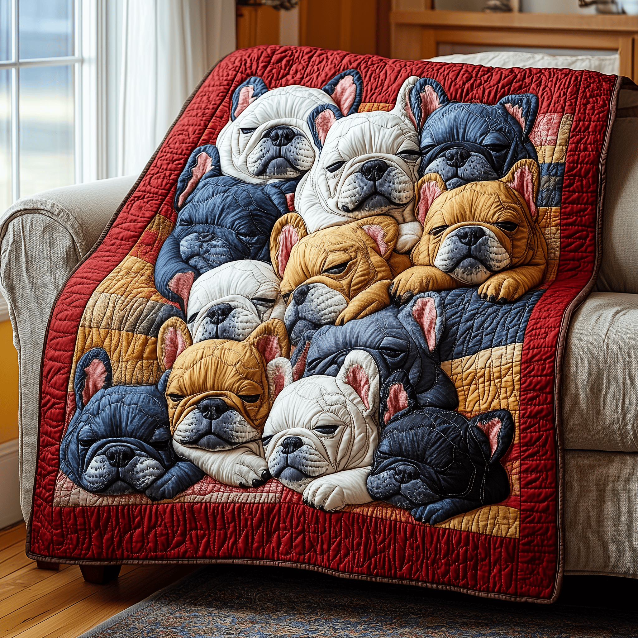 Adorable Sleepy French Bulldogs Elegant Quilted Blanket French Bulldog Lover Gifts