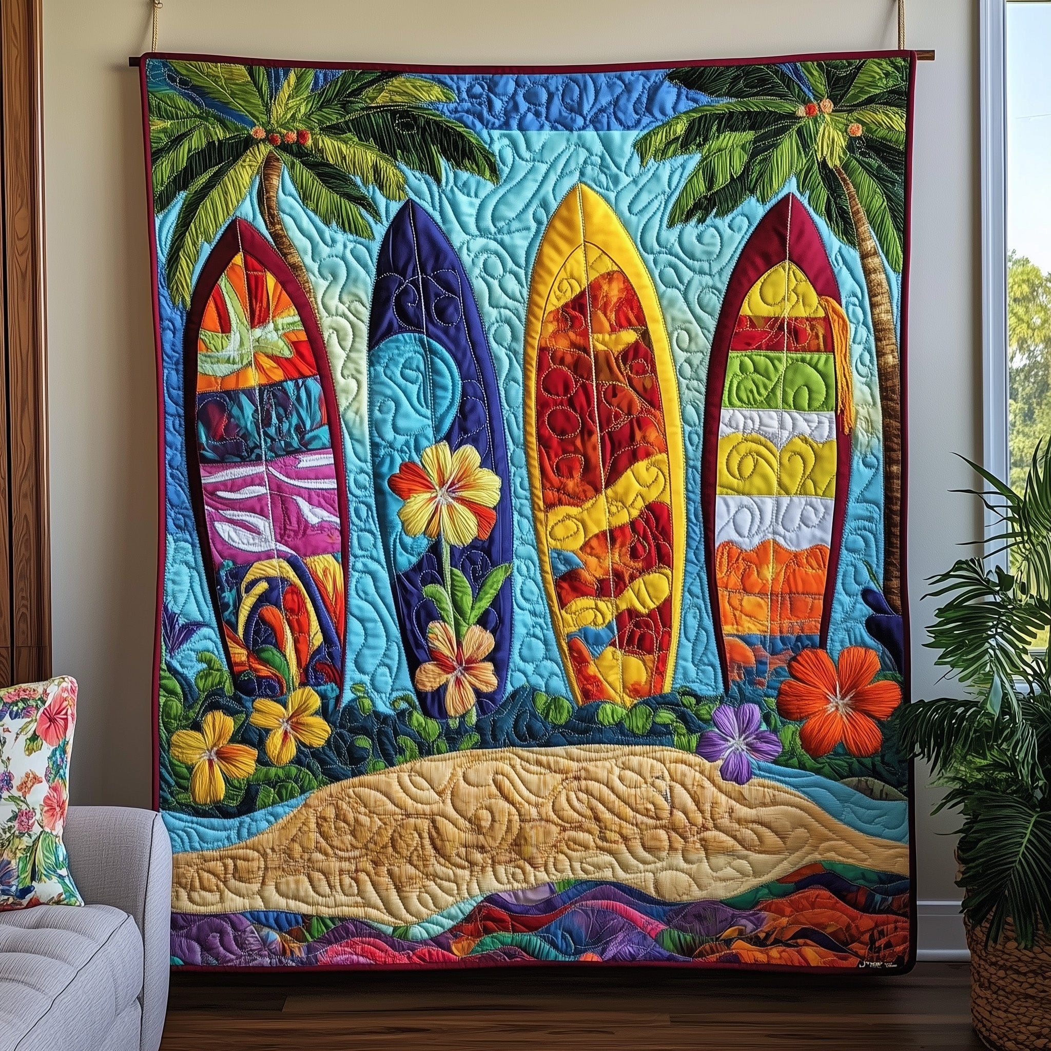 Aloha Surfboard Beach Summer Quilted Blanket Colorful Gifts For Someone Who Loves The Beach