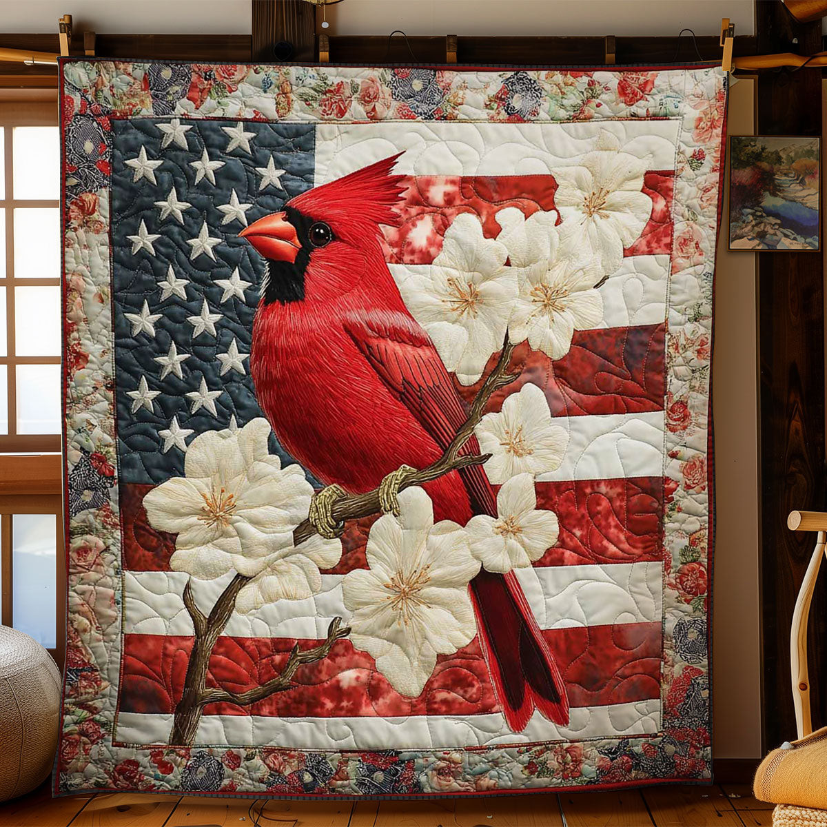American Blossom Nature Quilted Blanket USA Flag Veterans Day Gift Ideas