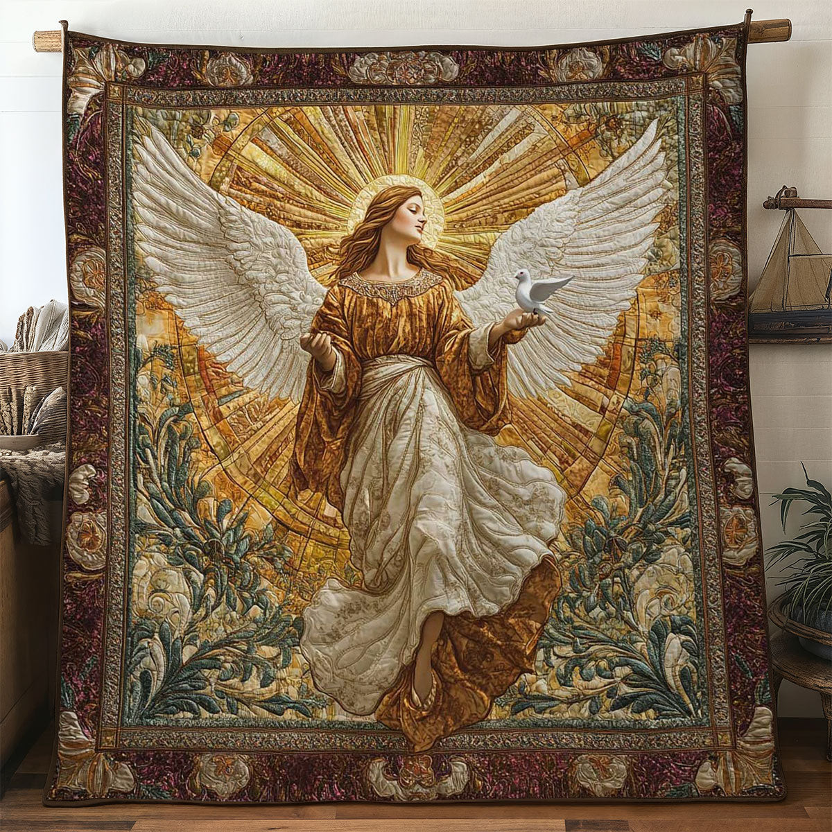$55.95 – $99.95Price range: $55.95 through $99.95Angel of Peace Quilted Blanket Religious Floral Pattern Gifts For Angel Lovers