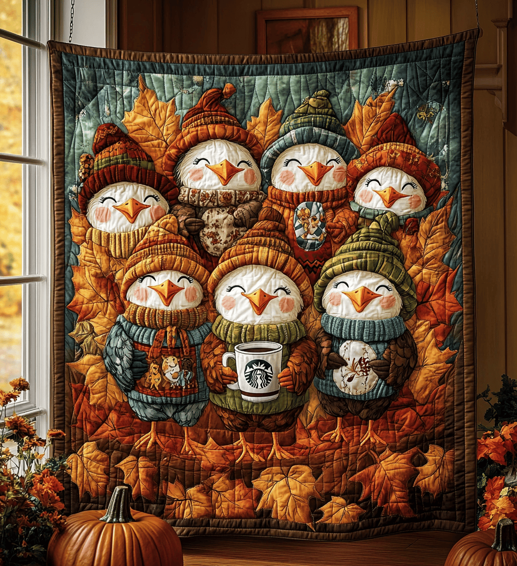 Autumn Happy Turkey Fall Theme Quilted Blanket Thanksgiving Home Gifts For Someone Who Loves Cute Turkey