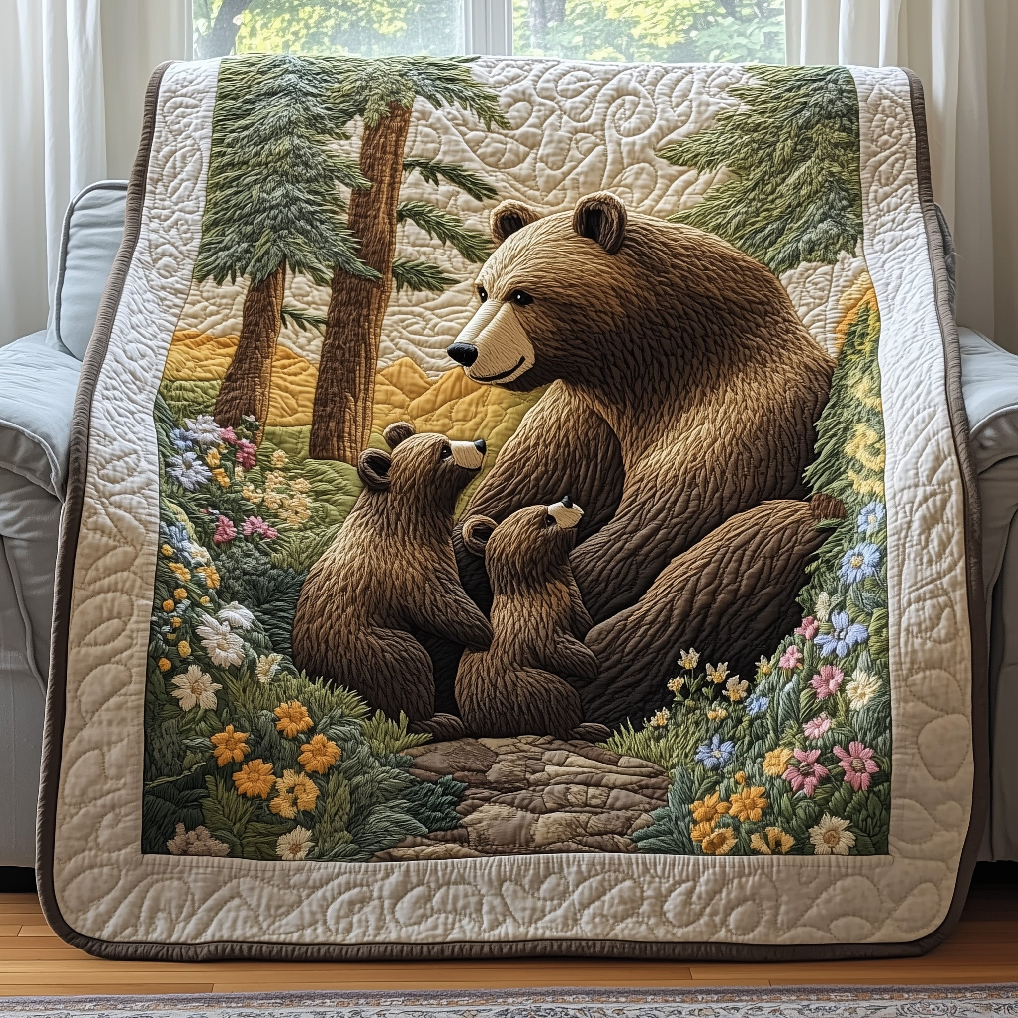 $55.95 – $99.95Price range: $55.95 through $99.95Bear Family Cozy Wildlife Classic Quilted Blanket Garden Spring Best Gifts For Bear Lovers Kids