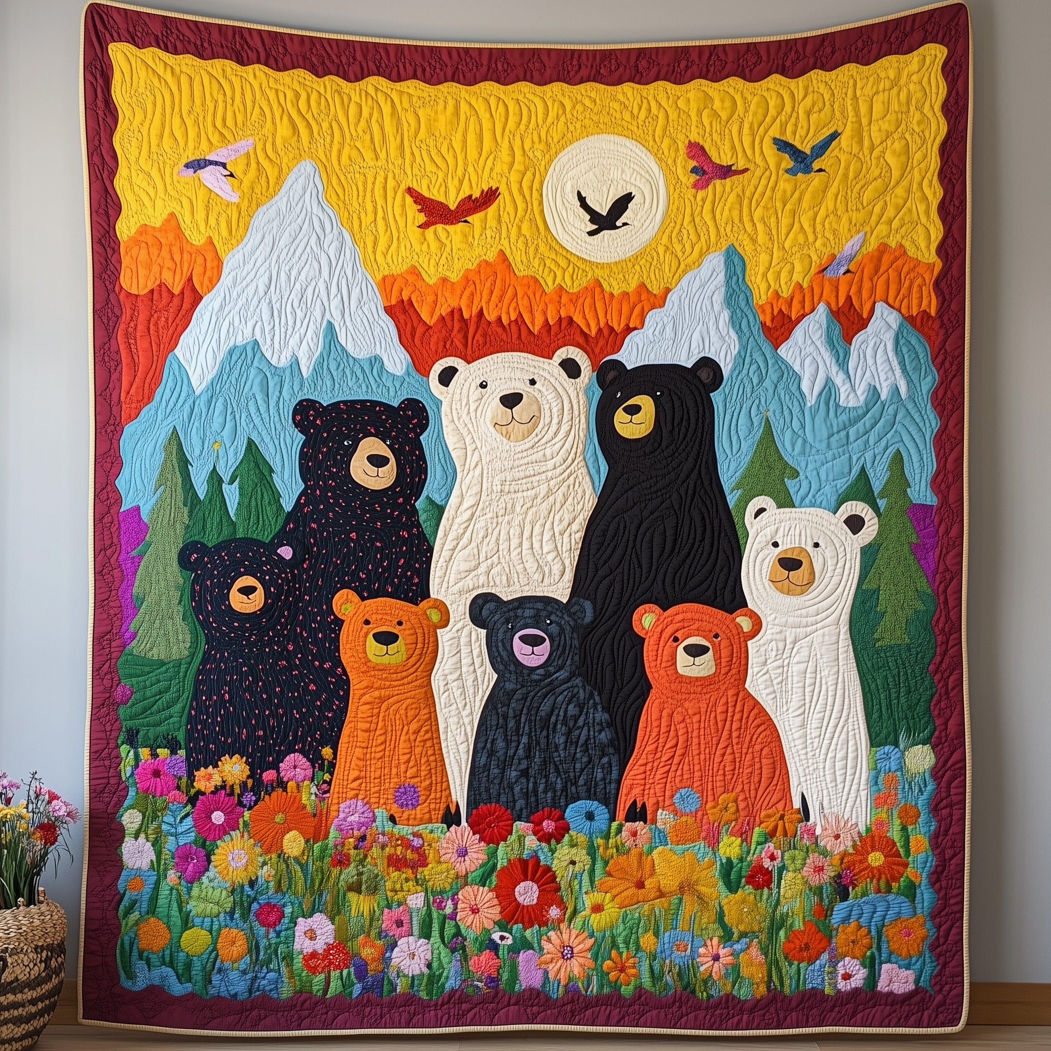 Bear Wildlife Forest Animal Retro Quilted Blanket Family Quilt Best Gifts For Bear Lovers Family