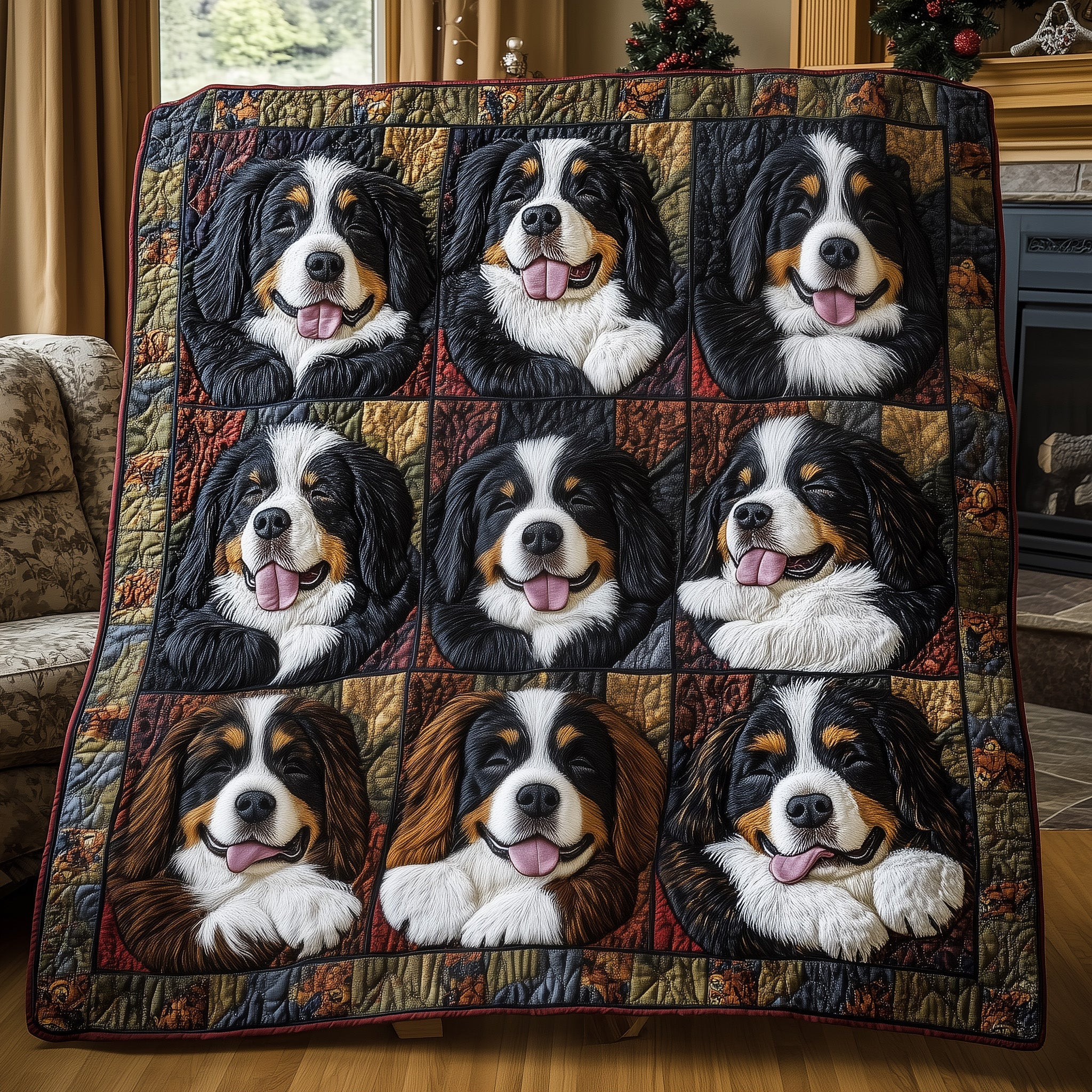 Bernese Mountain Dog Happy Quilted Blanket Presents For Bernese Mountain Dog Lovers