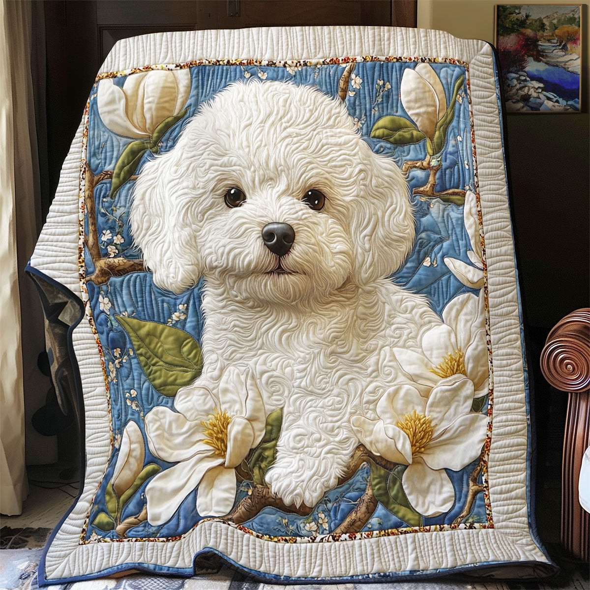 Bichon Frise Blossom Quilt Blanket Elegant Throw Blanket Presents For Dog Lovers