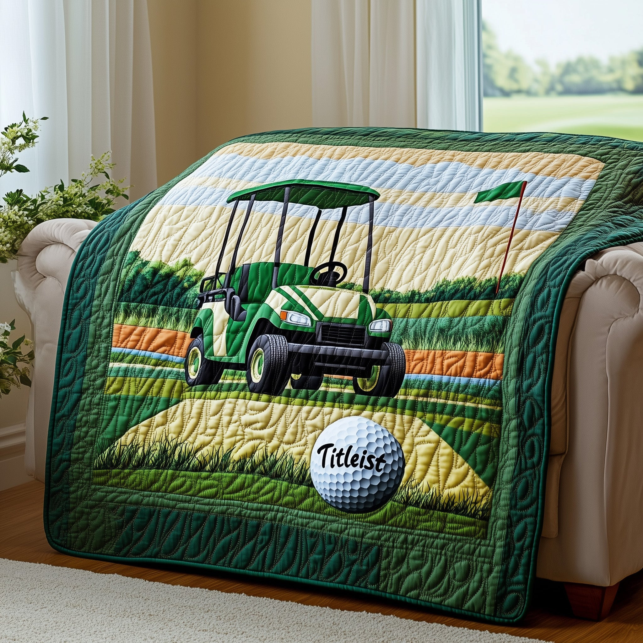 Golf Course Quilted Blanket Tranquil Golf Themed Throw Top Gifts For A Golfer