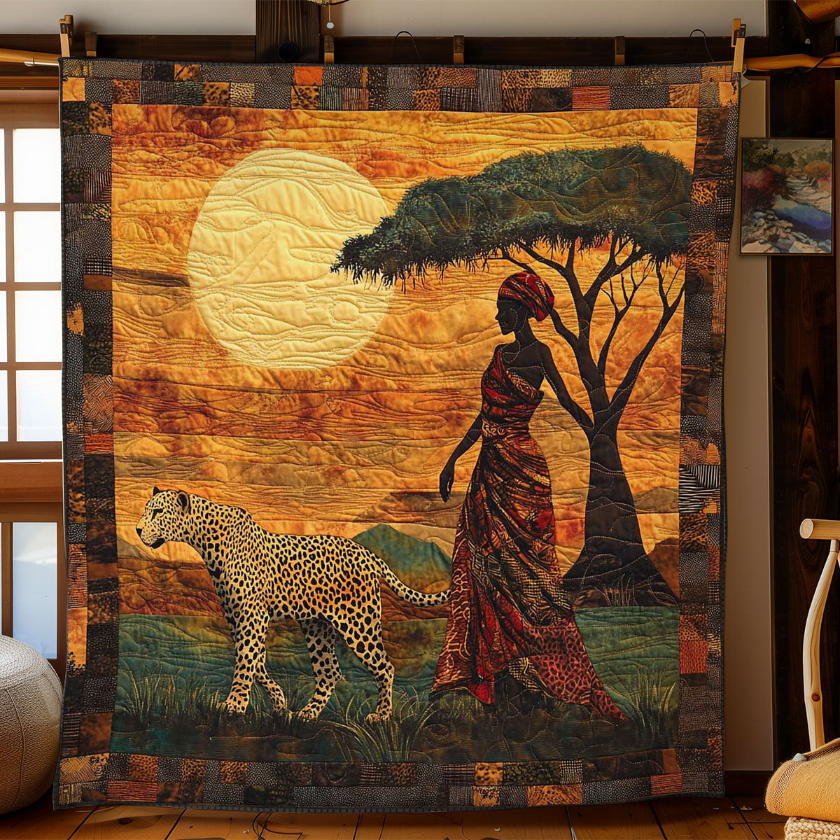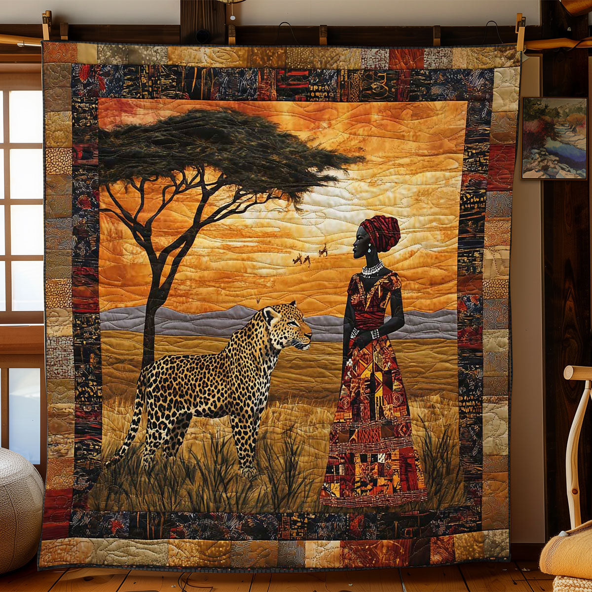 Leopard The Queen’s Guardian Quilt Blanket African Art Throw Blanket Gifts For Native