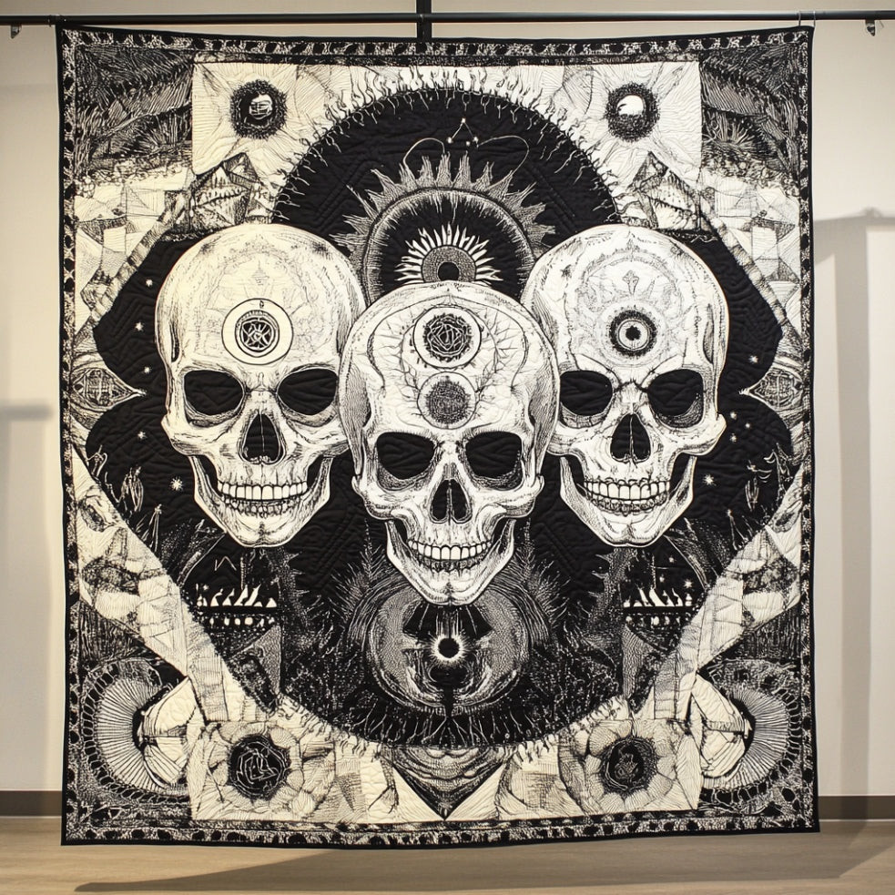 Monochrome Skull Quilt Blanket Art Throw Blanket Geometric Memento Gift Ideas