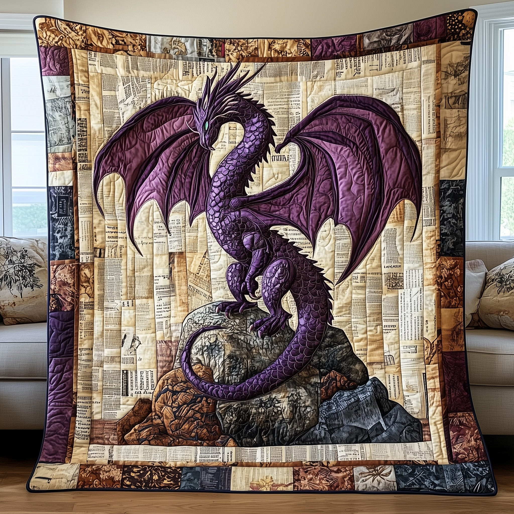 Mystic Dragon Quilted Blanket Purple Scales Fantasy Theme Best Gifts For Dragon Lovers