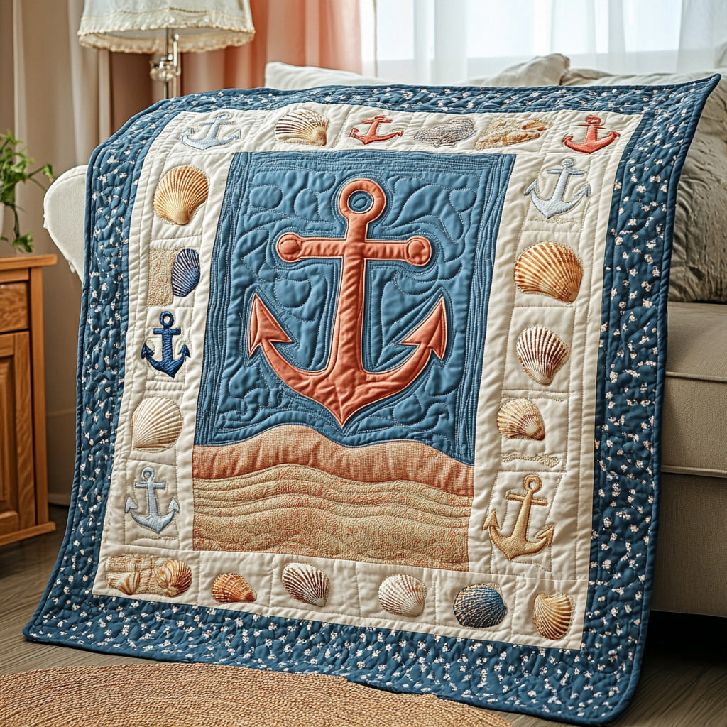 Nautical Quilted Blanket Elegant Seaside Art Quilt Themed Gifts For Sea Lovers