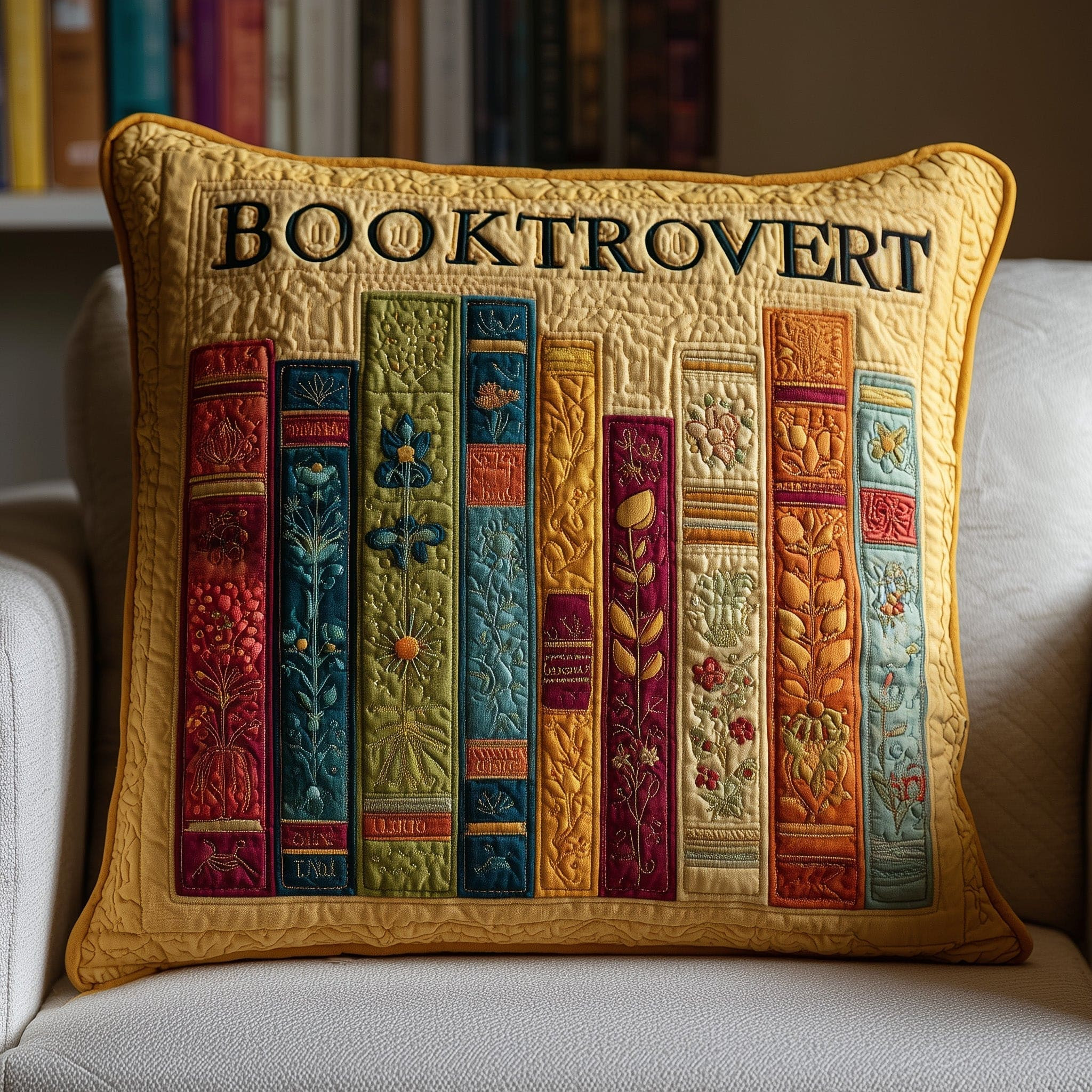 Booktrovert Quilted Pillow Golden Retro Sofa Decor Present Ideas For People Who Love Books